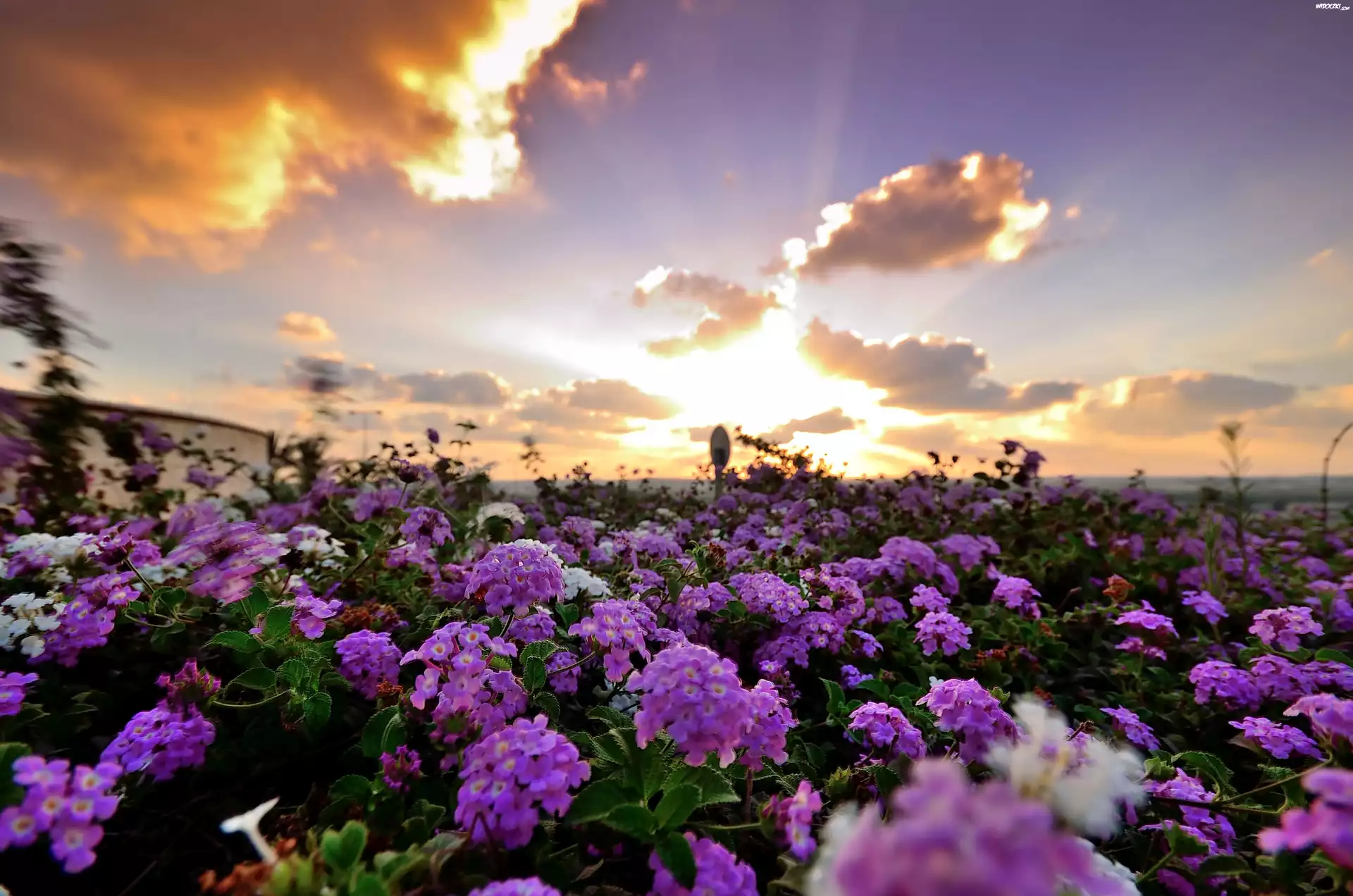 Niebo, Chmury, Łąka, Kwiaty