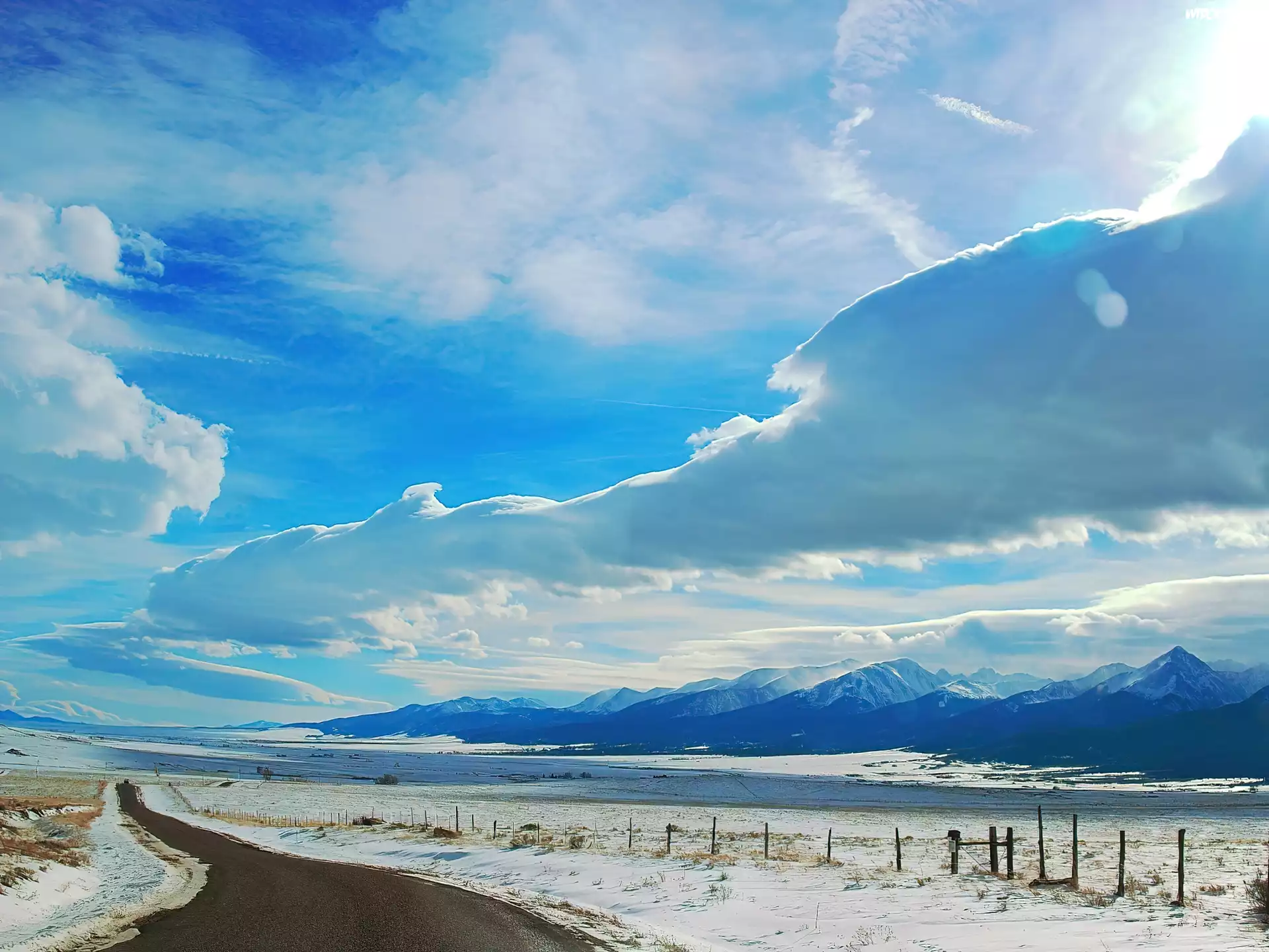Zdjęcia, Niebo, Chmury, Droga, Zima