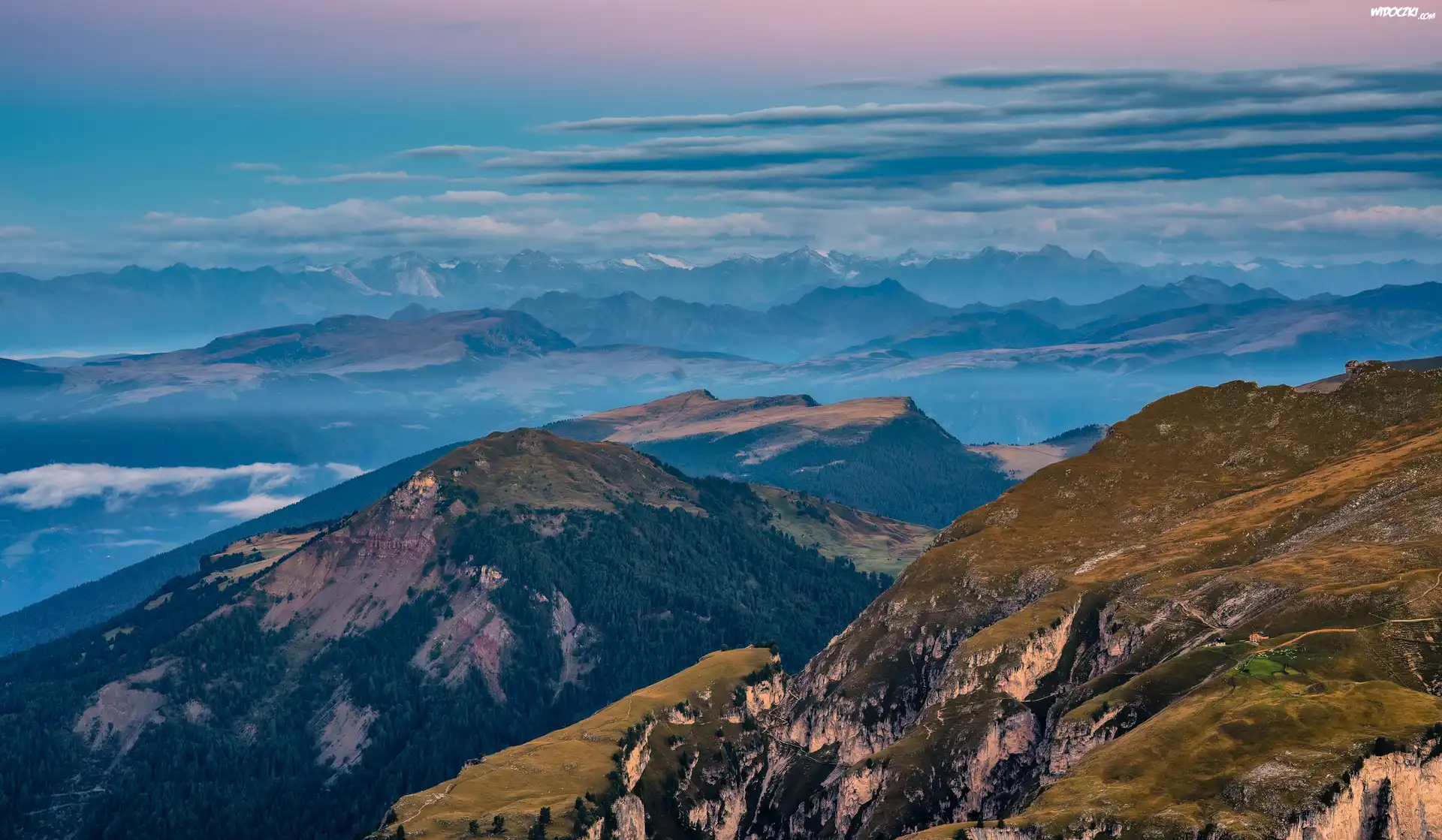 Zdjęcia, Góry, Szczyty, Chmury, Niebo