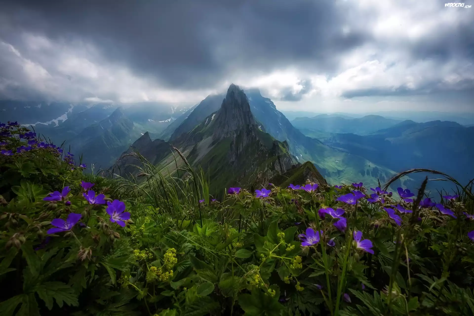 Zdjęcia, Góry, Niebo, Kwiaty