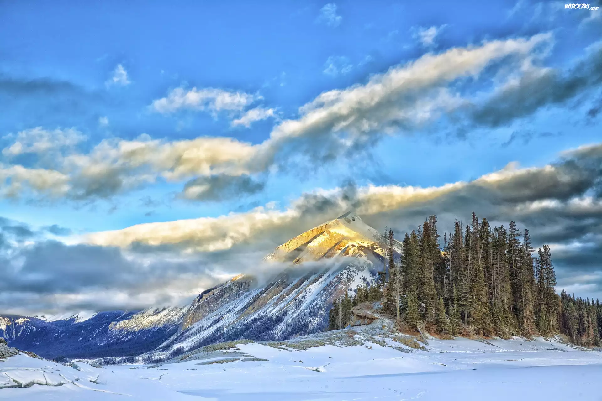 Zdjęcia, Niebo, Chmury, Zima, Góry, Las