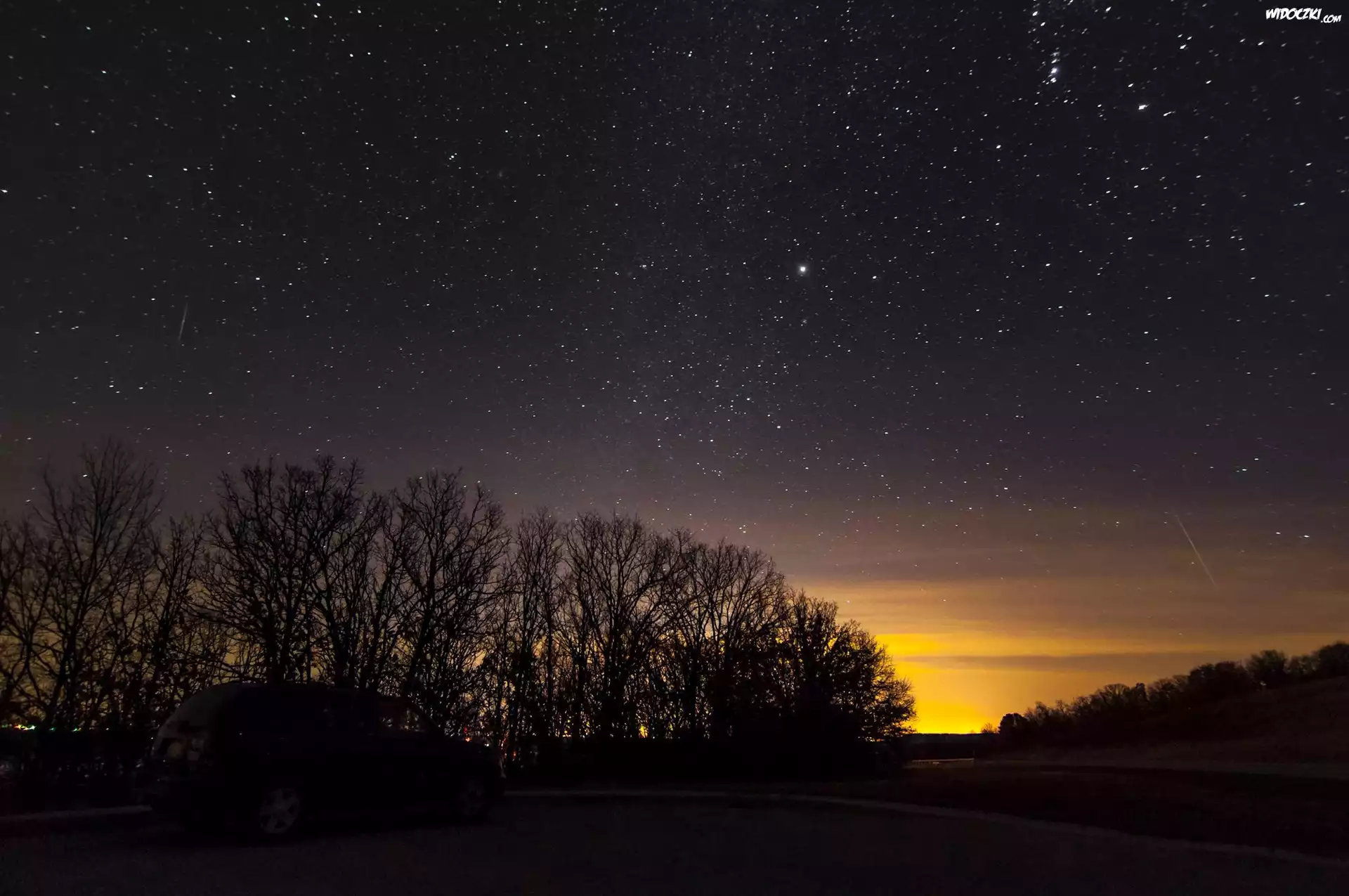 Zdjęcia, Niebo, Noc, Gwiazdy, Drzewa