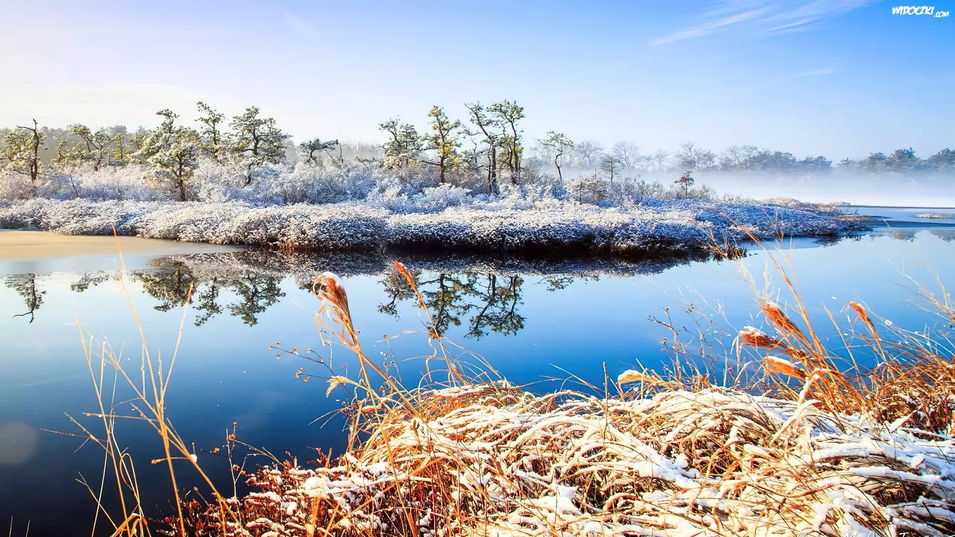 Zdjęcia, Jezioro, Niebo, Drzewo