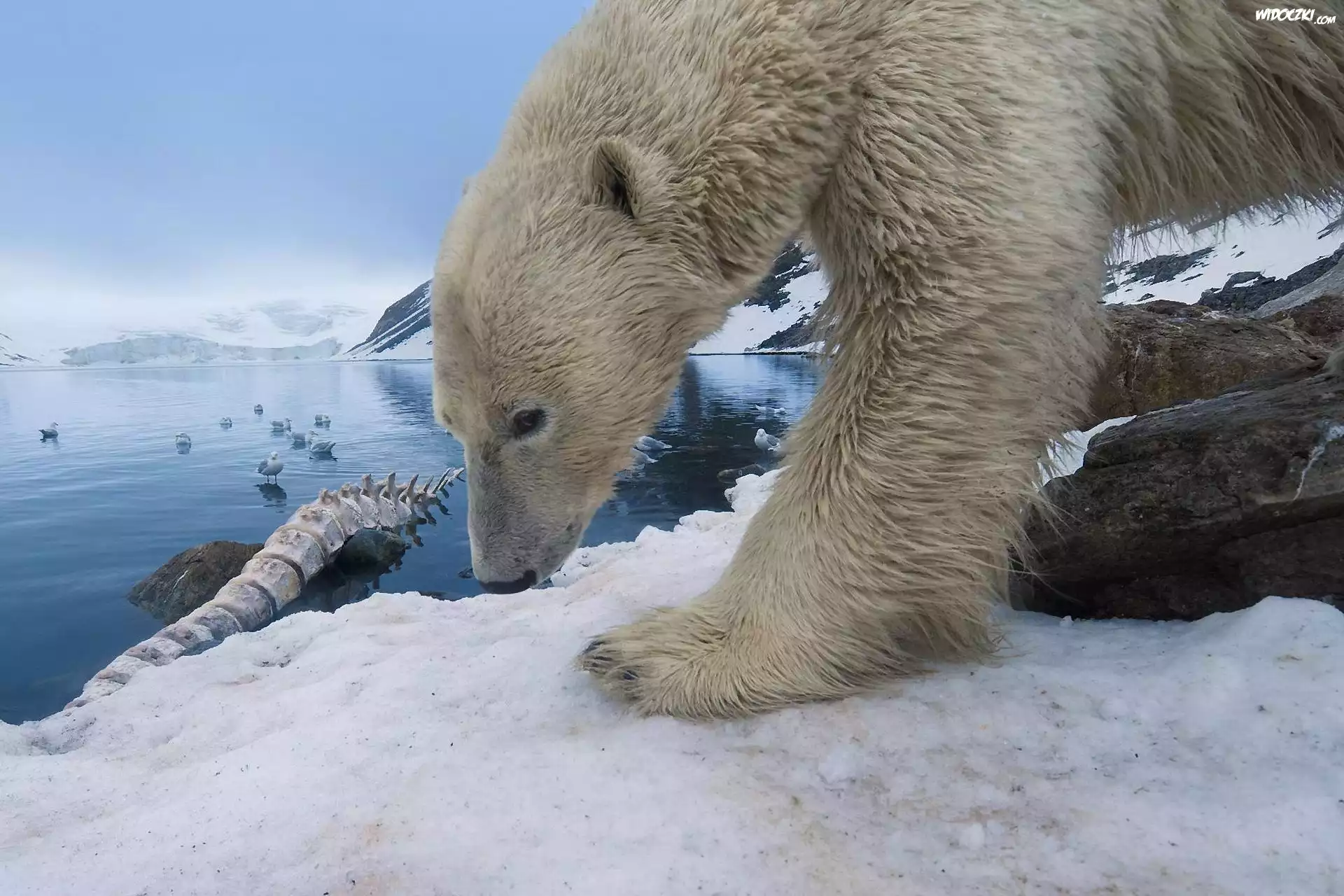 Zdjęcia, Niebo, Śnieg, Jezioro, Miś