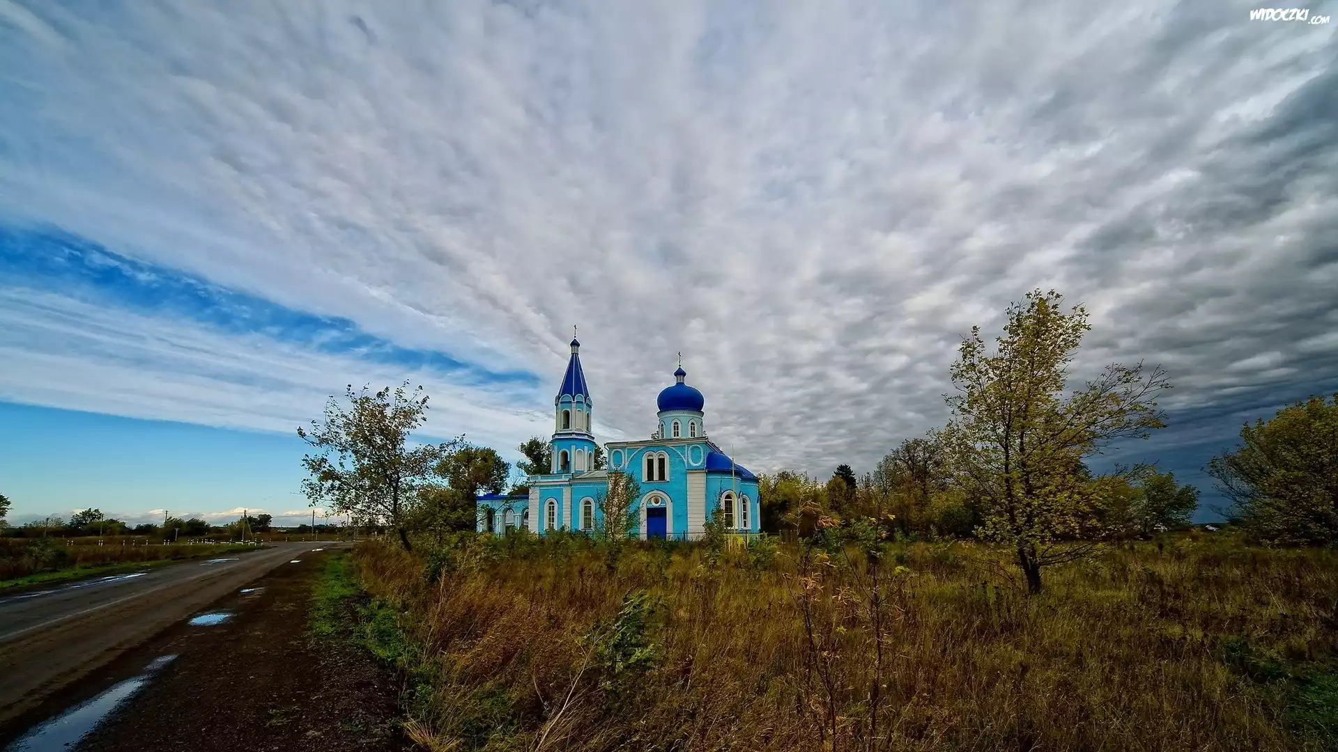 Zdjęcia, Niebo, Chmury, Droga, Kościół, Cerkiew