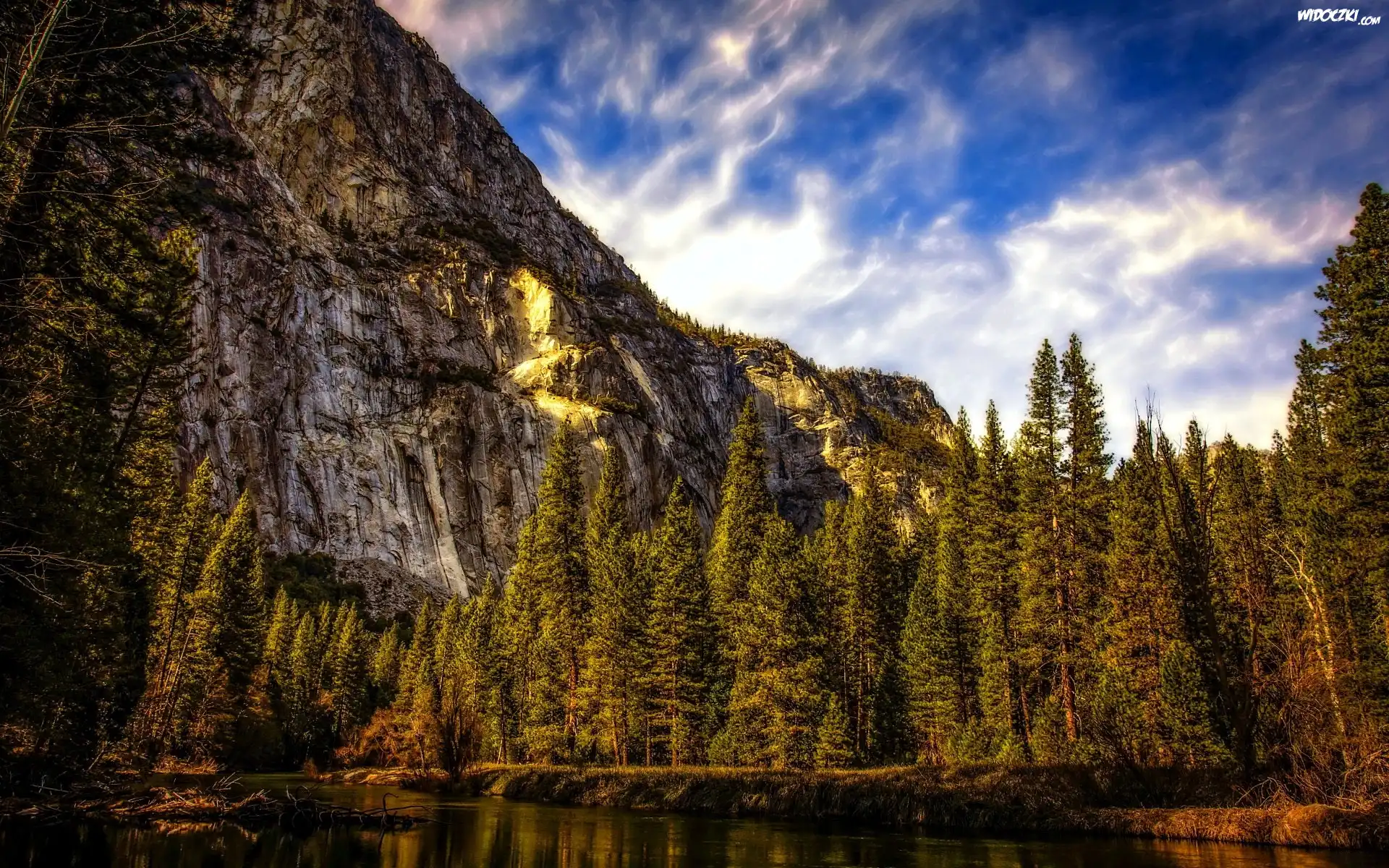 Zdjęcia, Niebo, Góry, Las, Rzeka