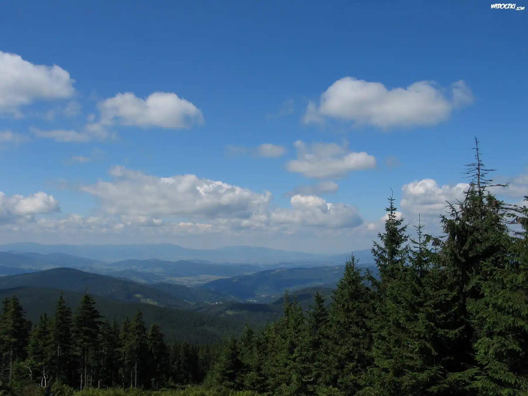 Świerki, Lasy, Góry, Niebo, Chmury