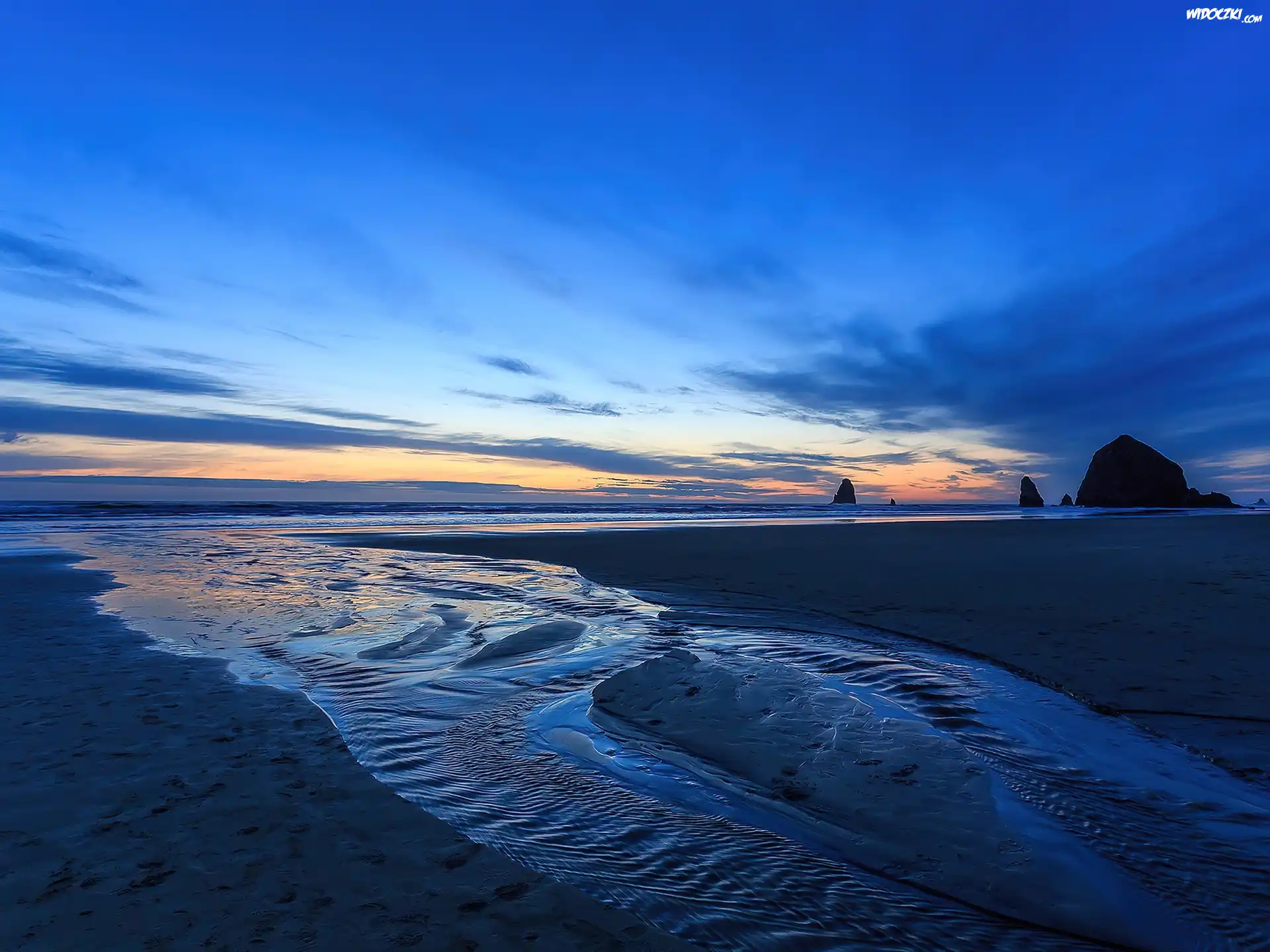 Zdjęcia, Niebo, Chmury, Plaża, Morze, Skały