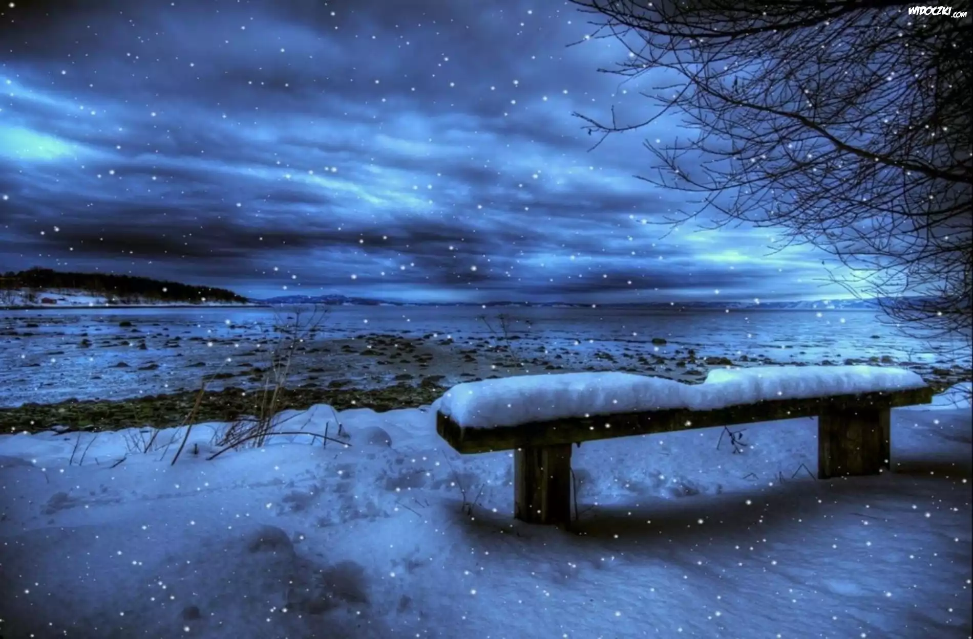 Zdjęcia, Niebo, Zima, Ławka, Nad, Jeziorem