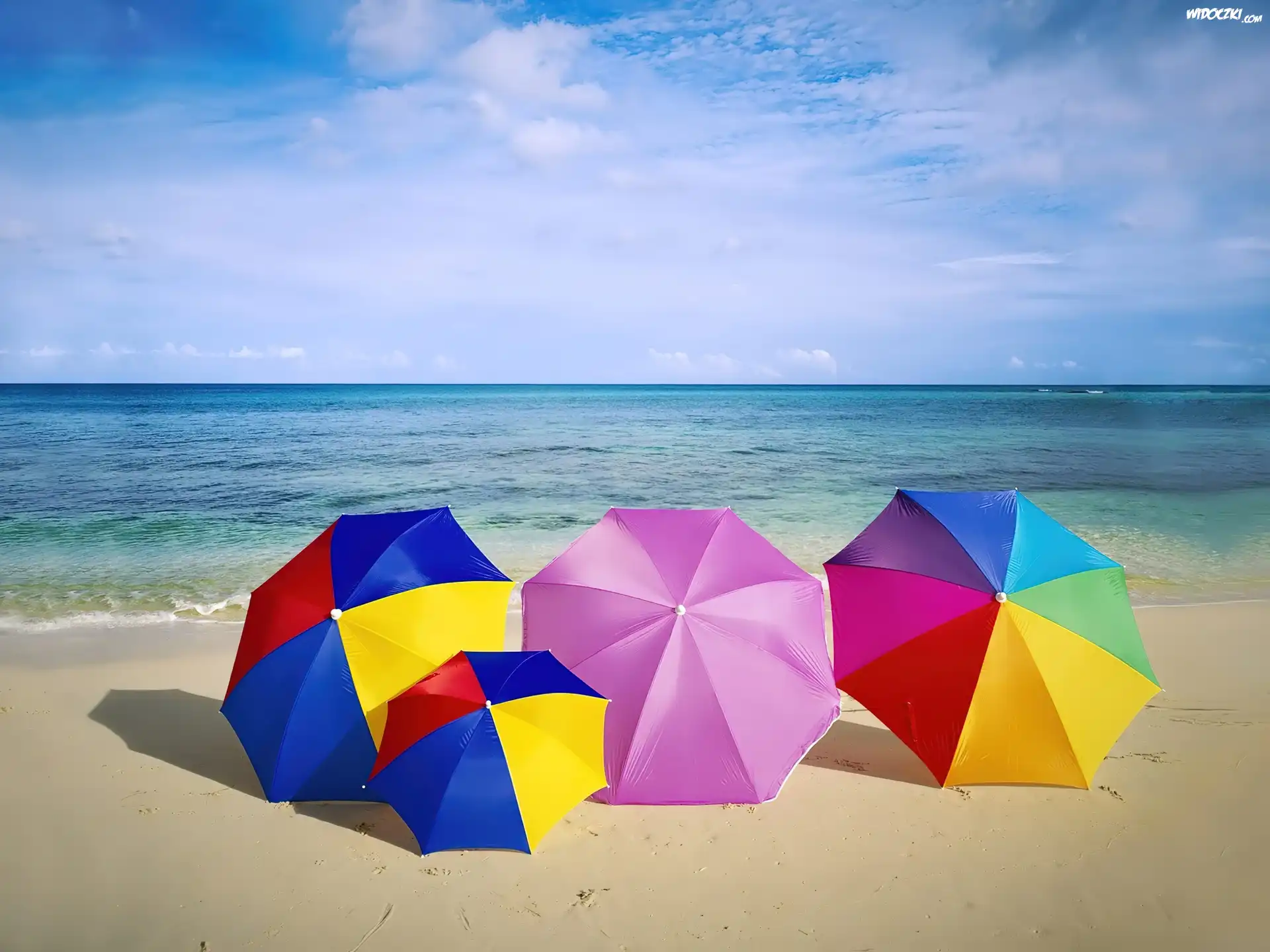 Zdjęcia, Niebo, Morze, Plaża, Parasole