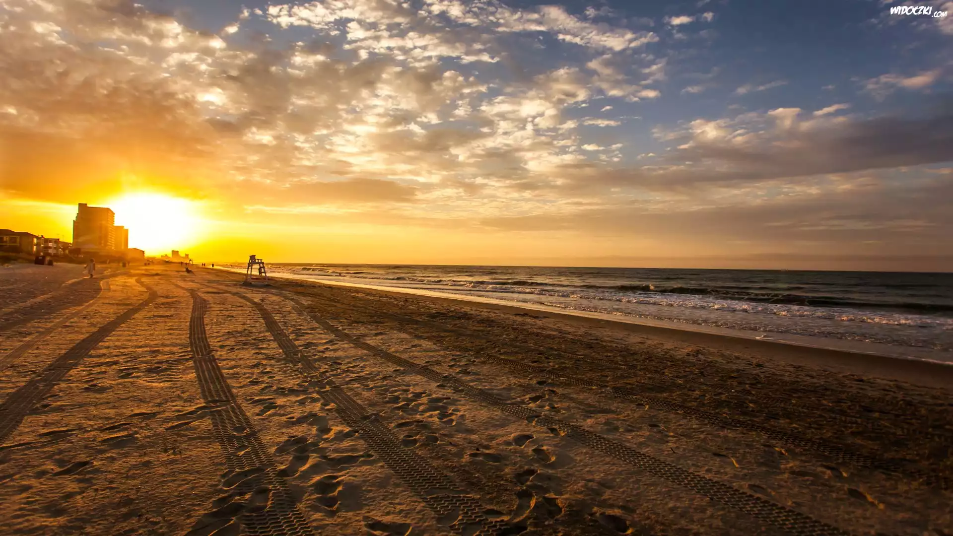 Zdjęcia, Niebo, Chmury, Zachod, Slonca, Plaza, Morze
