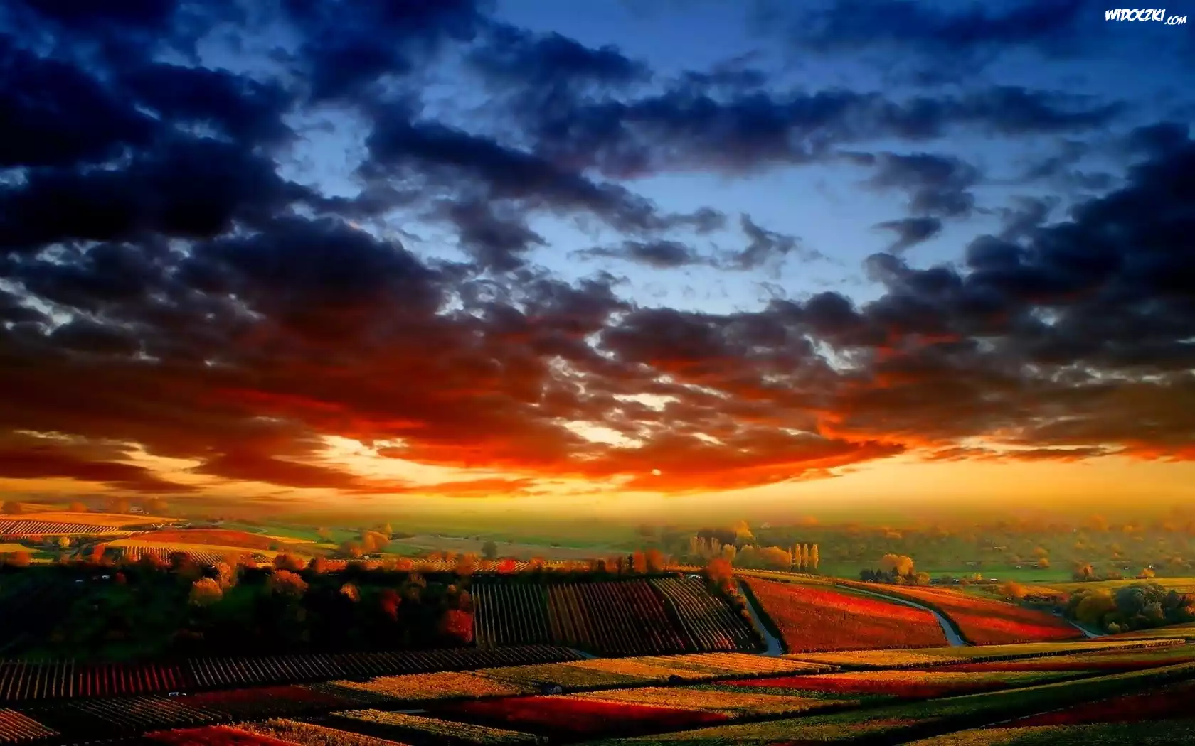 Zdjęcia, Niebo, Chmury, Pola, Jesień