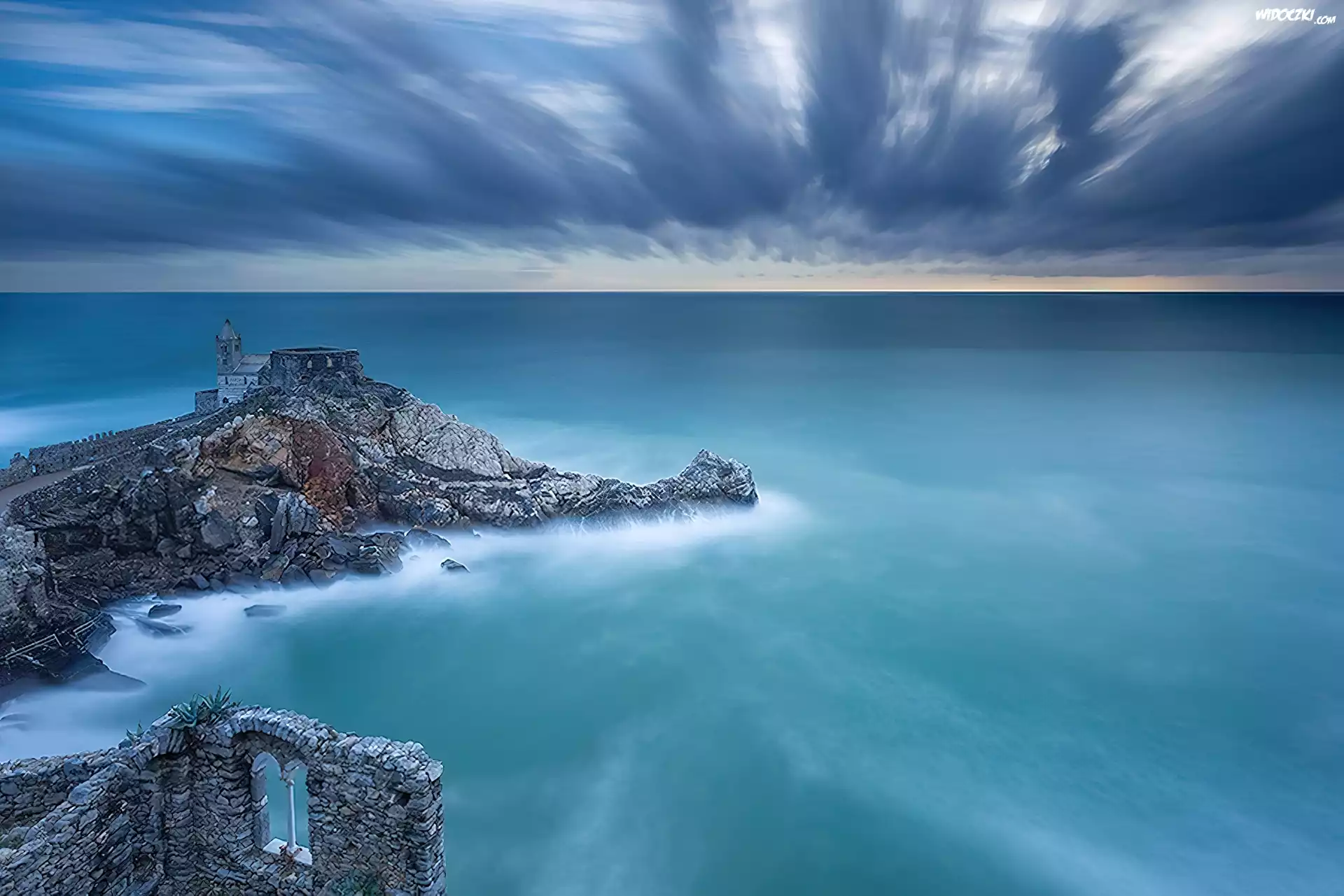 Zdjęcia, Niebo, Morze, Ruiny, Skała