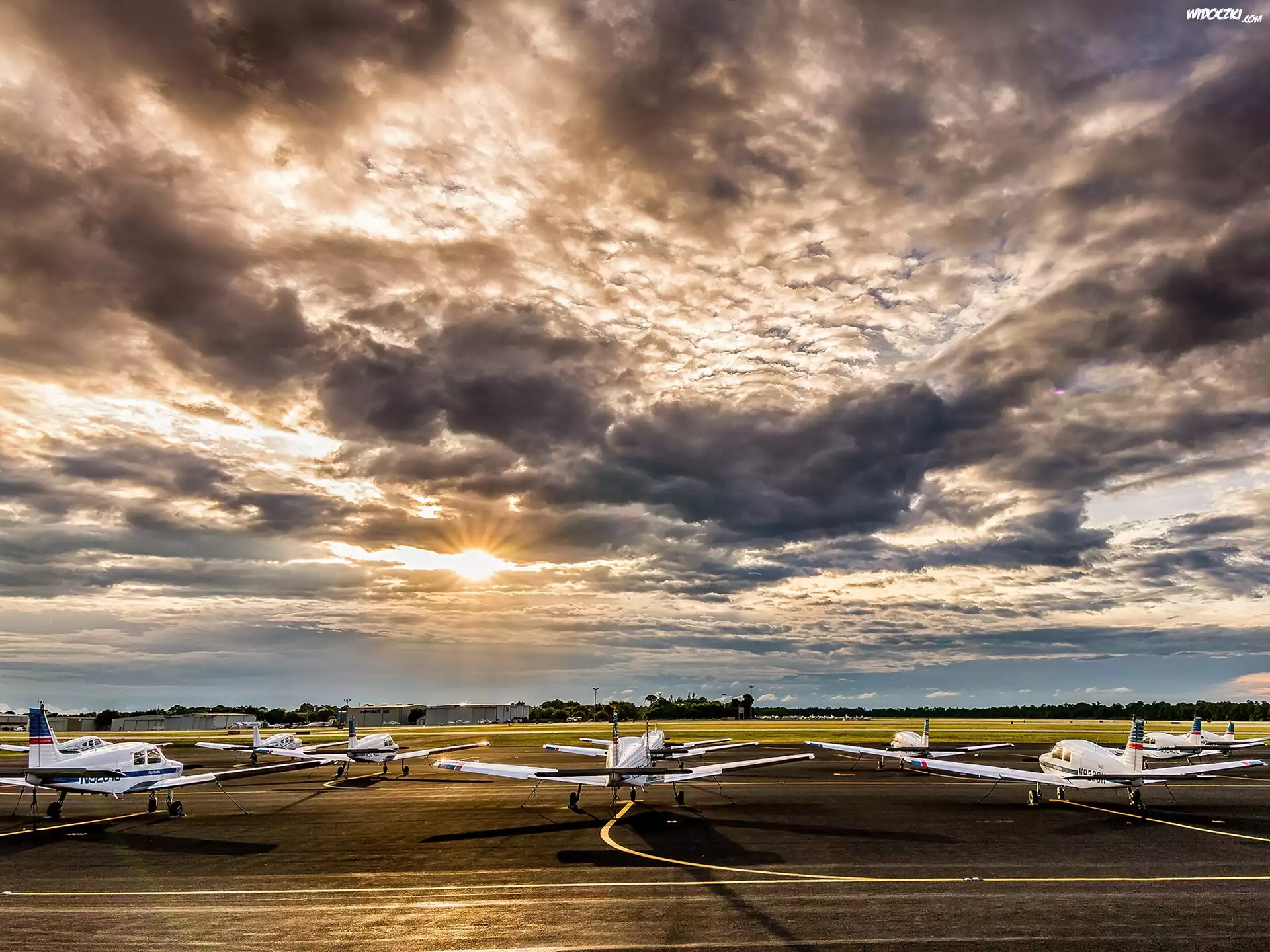 Zdjęcia, Niebo, Chmury, Samoloty, Lotnisko