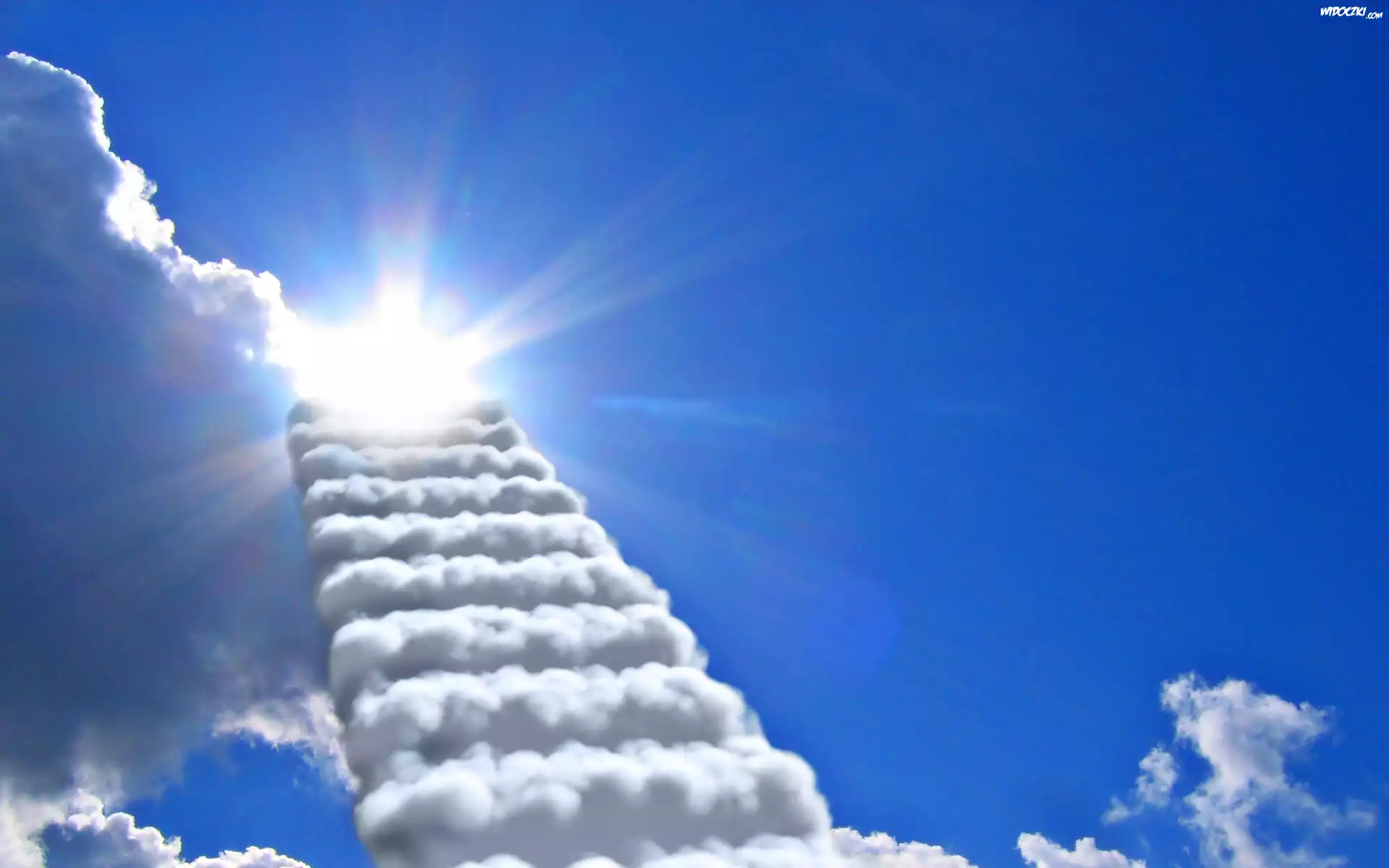 Zdjęcia, Niebo, Chmury, Schody, Słońce