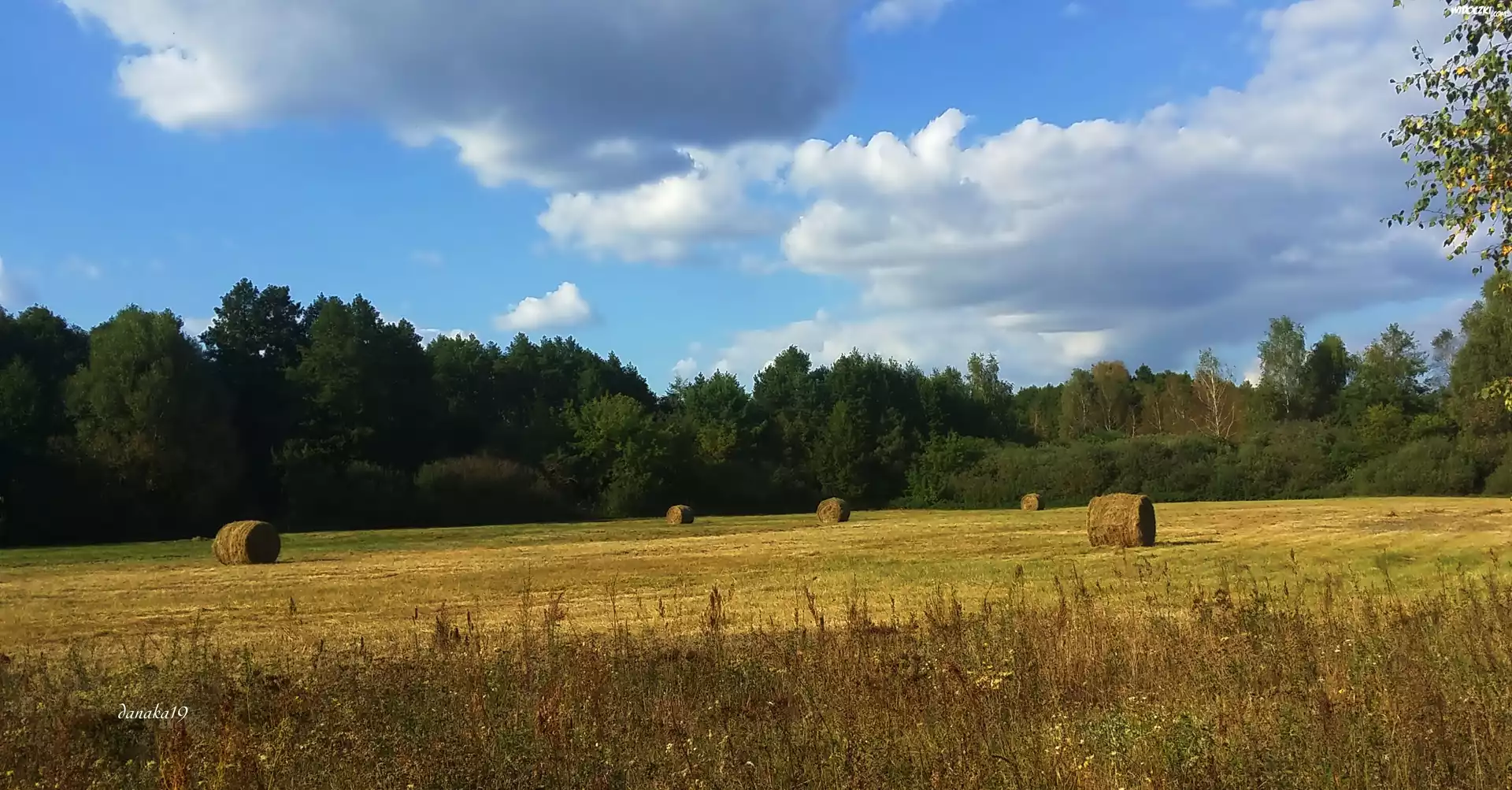 Zdjęcia, Łąka, Siano, Trawa, Niebo, Chmury