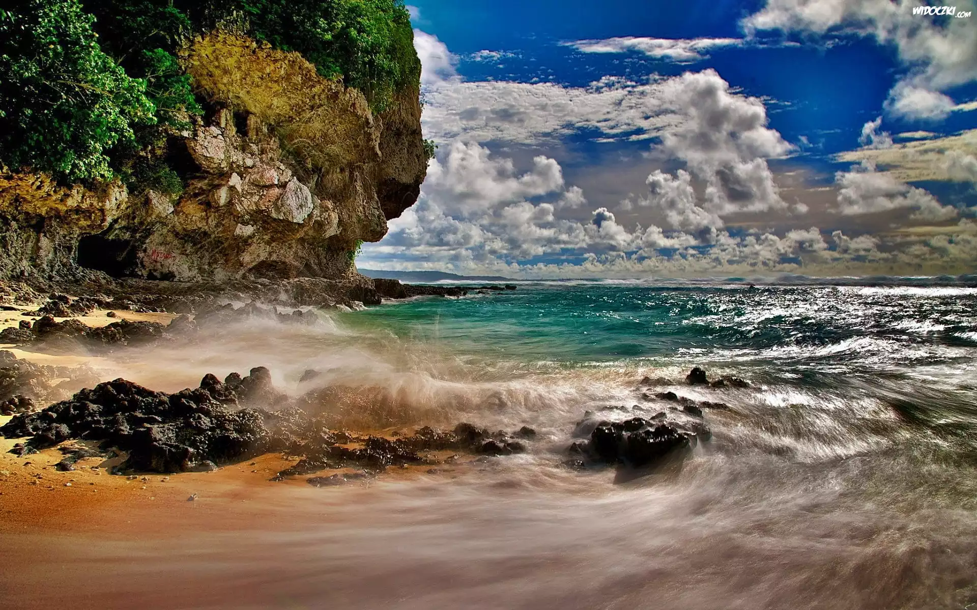 Zdjęcia, Niebo, Obłoki, Morze, Skalisty, Brzeg