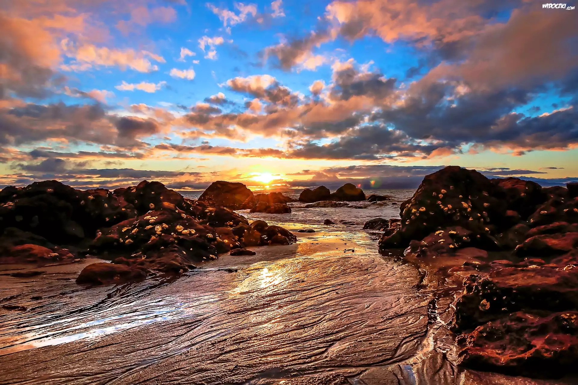 Zdjęcia, Niebo, Chmury, Skały, Świt