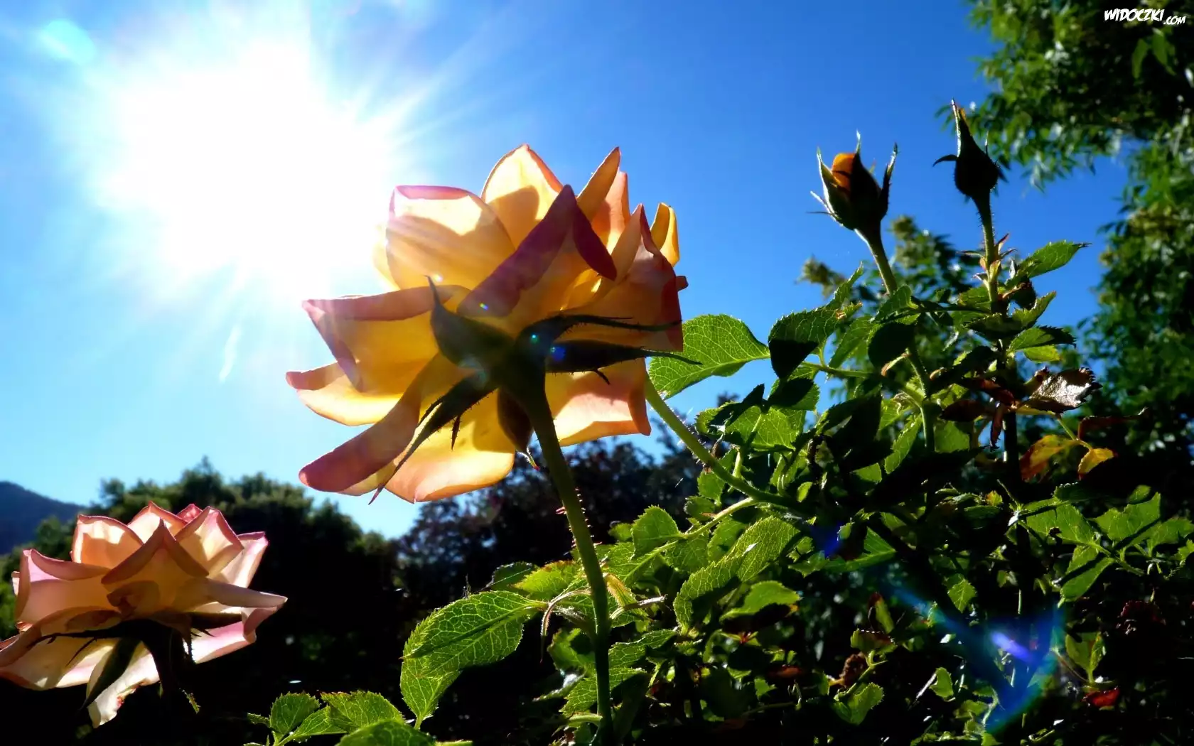 Zdjęcia, Niebo, Promienie, Slońca, Róże