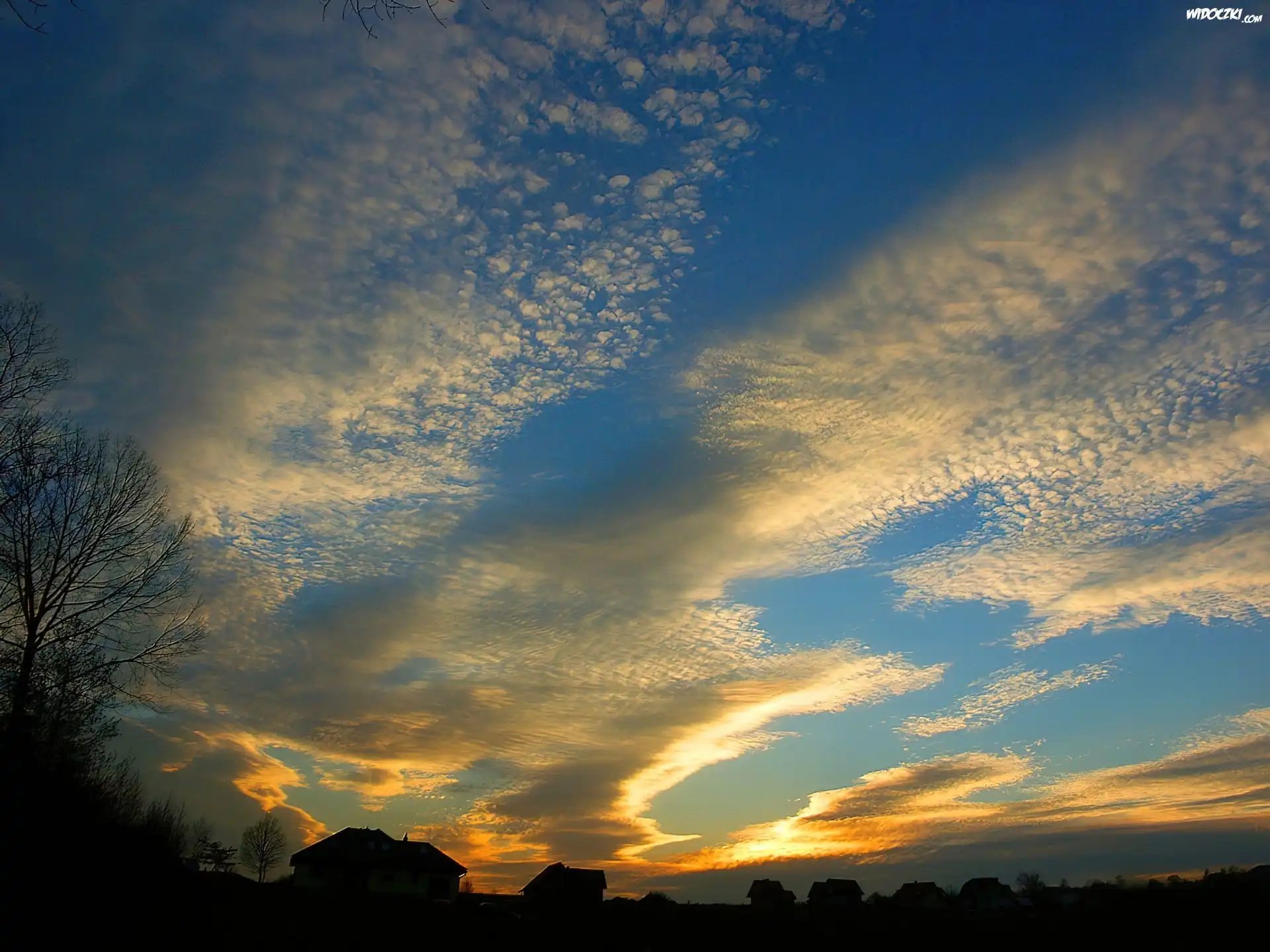 Zdjęcia, Niebo, Chmury, Zachód, Słońca, Domy