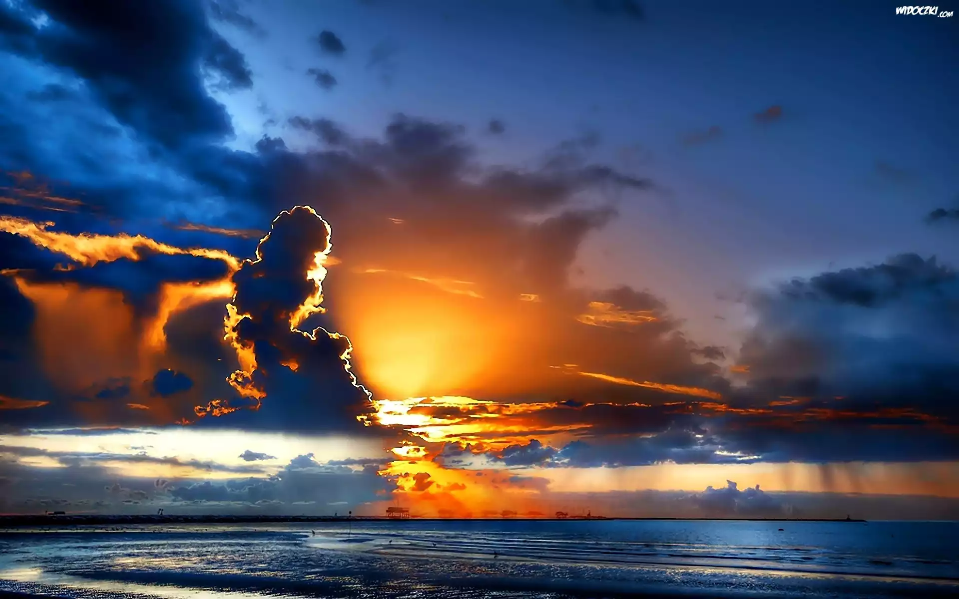 Niebo, Chmury, Zachód, Słońca, Jezioro