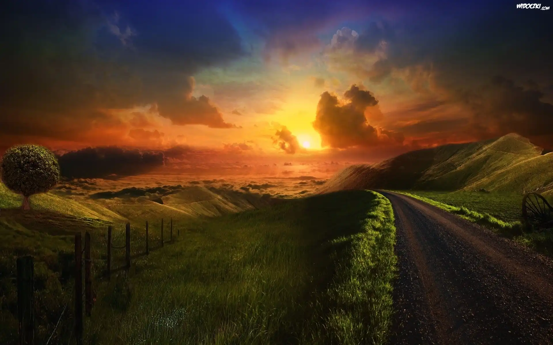 Zdjęcia, Niebo, Zachód, Słońca, Droga