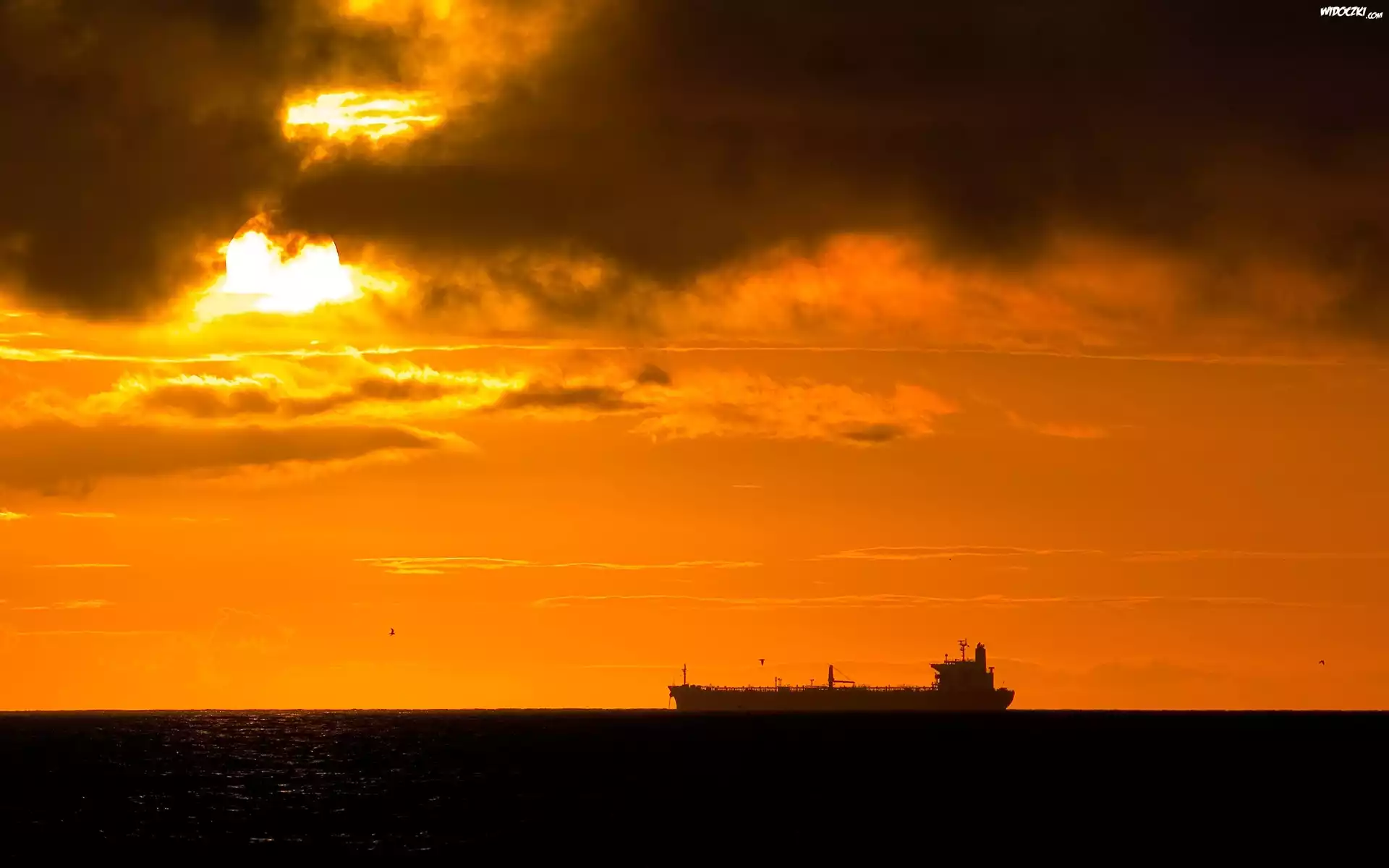 Zdjęcia, Niebo, Chmury, Zchod, Slonca, Statek