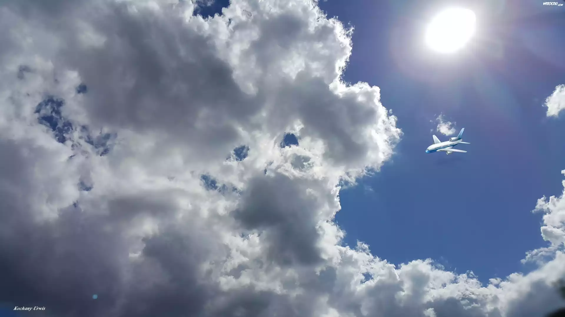 Niebo, Chmury, Słońce, Samolot