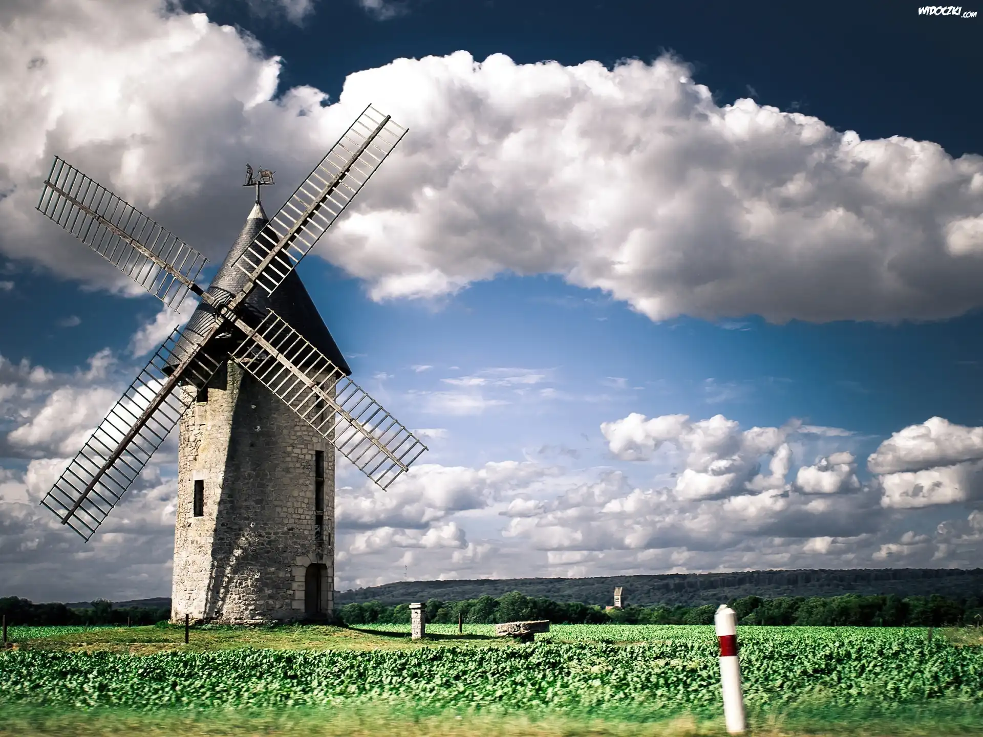Zdjęcia, Wiatrak, Niebo, Chmury