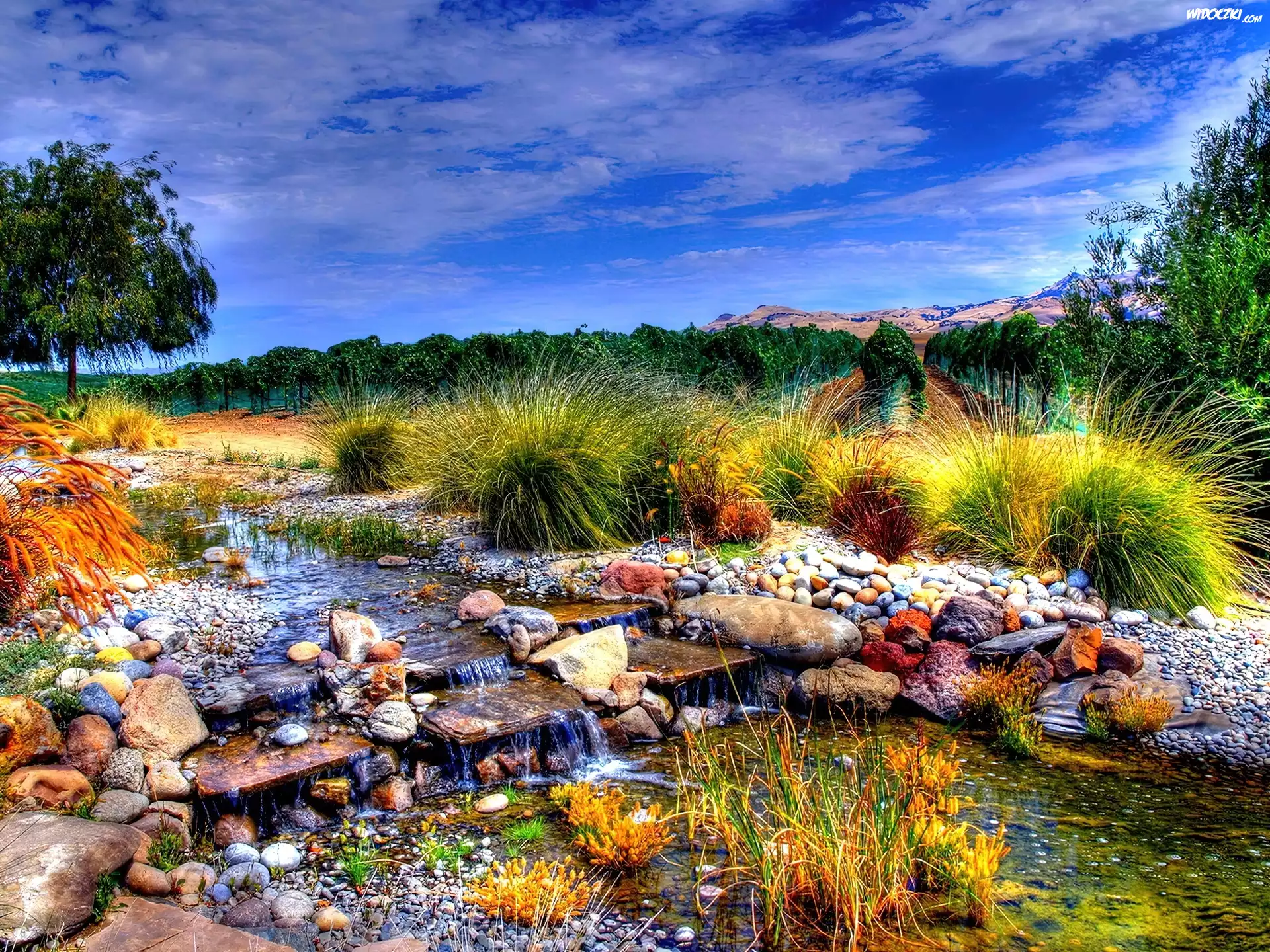 Zdj臋cia, Niebo, Drzewa, Woda, Kamienie