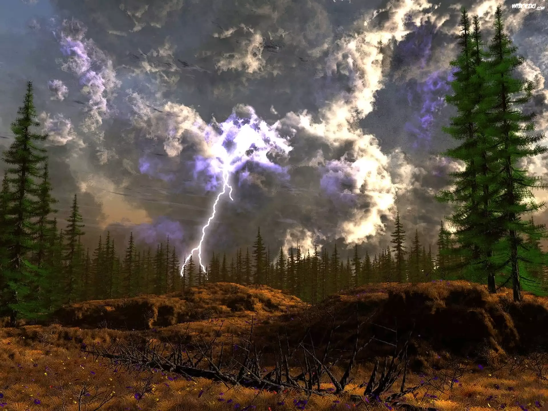 Zdjęcia, Niebo, Błyskawica, Wysokie, Drzewa