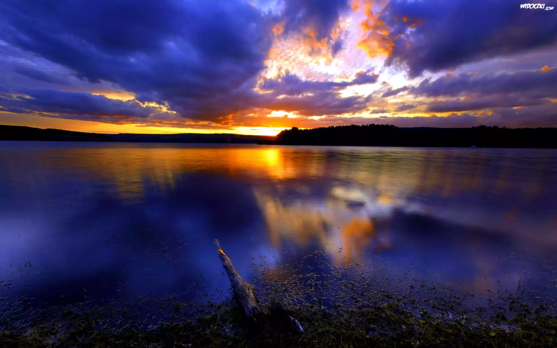 Zdjęcia, Niebo, Chmury, Jezioro, Zachód słońca