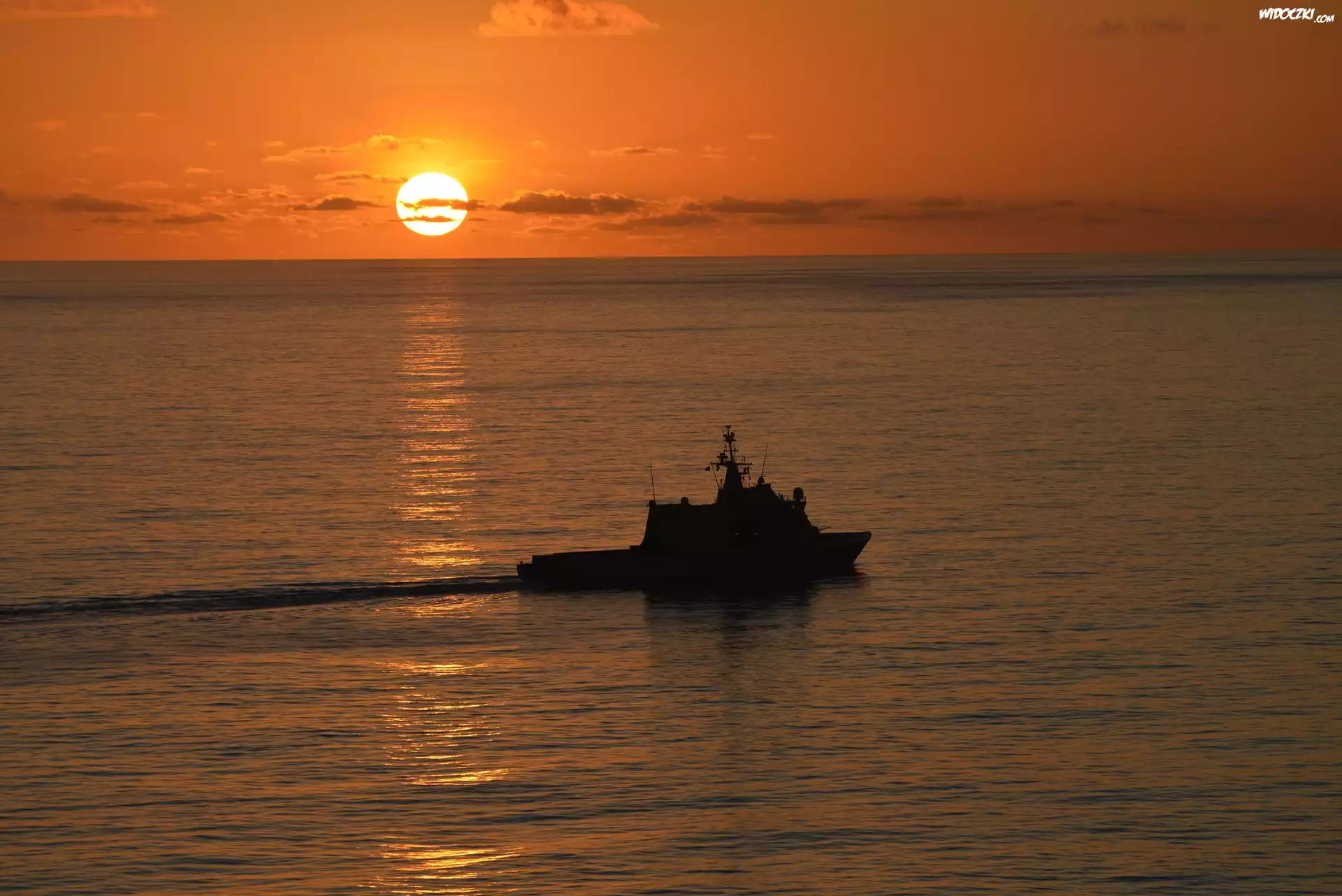 Niebo, Chmury, Morze, Zachod, Slonca