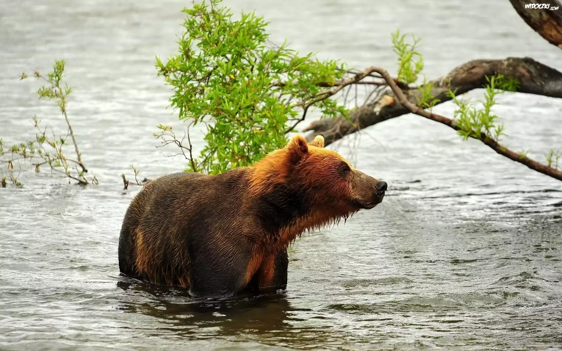 Niedzwiedz, Brunatny, Rzeka, Drzewo