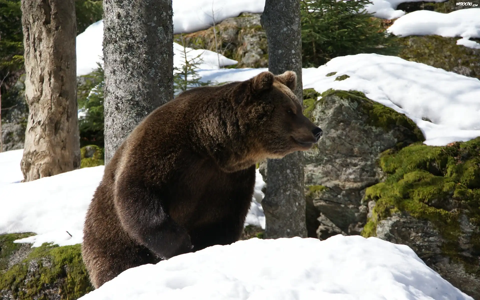 Zdjęcia, Niedzwiedz, Brunatny, Skały, Zima