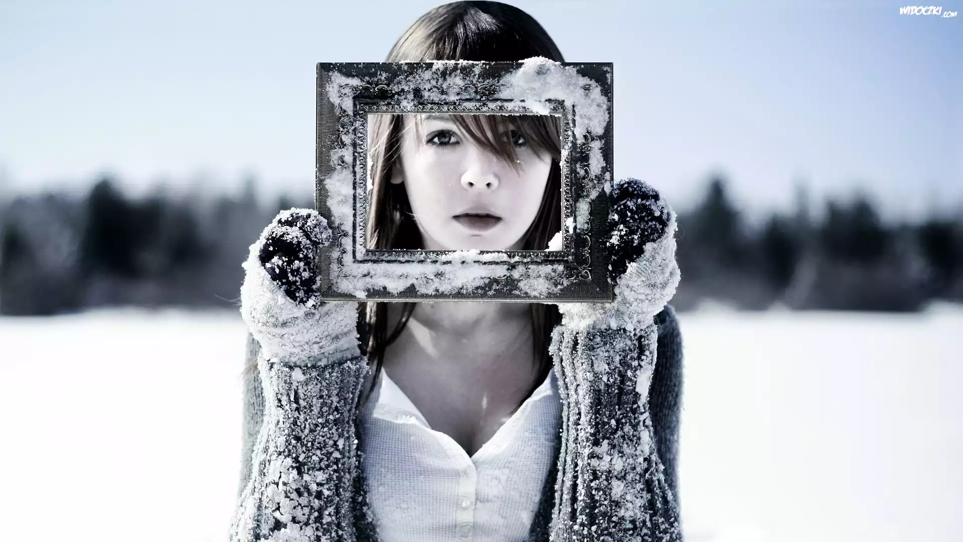 Zdjęcia, Śliczna, Dziewczyna, Śnieg, Ramka