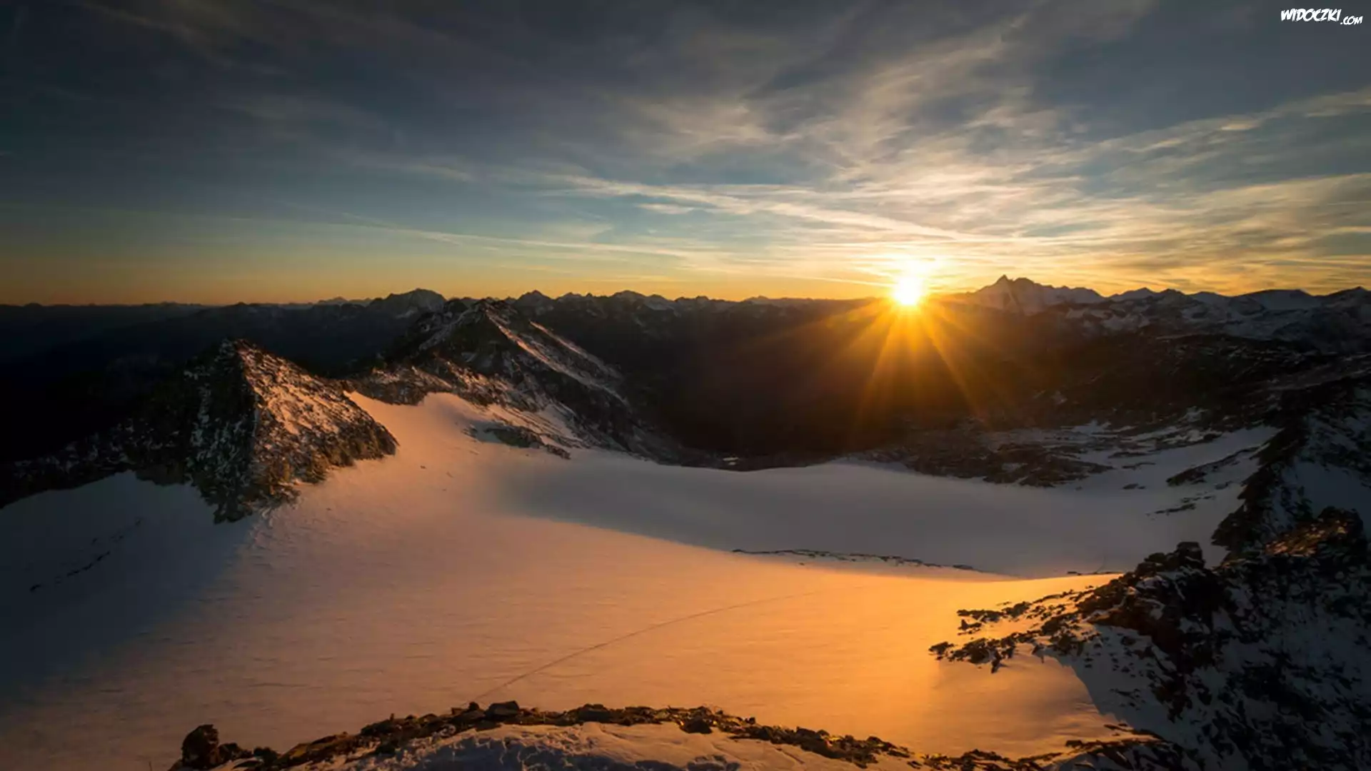 Zdjęcia, Góry, Śnieg, Zachód