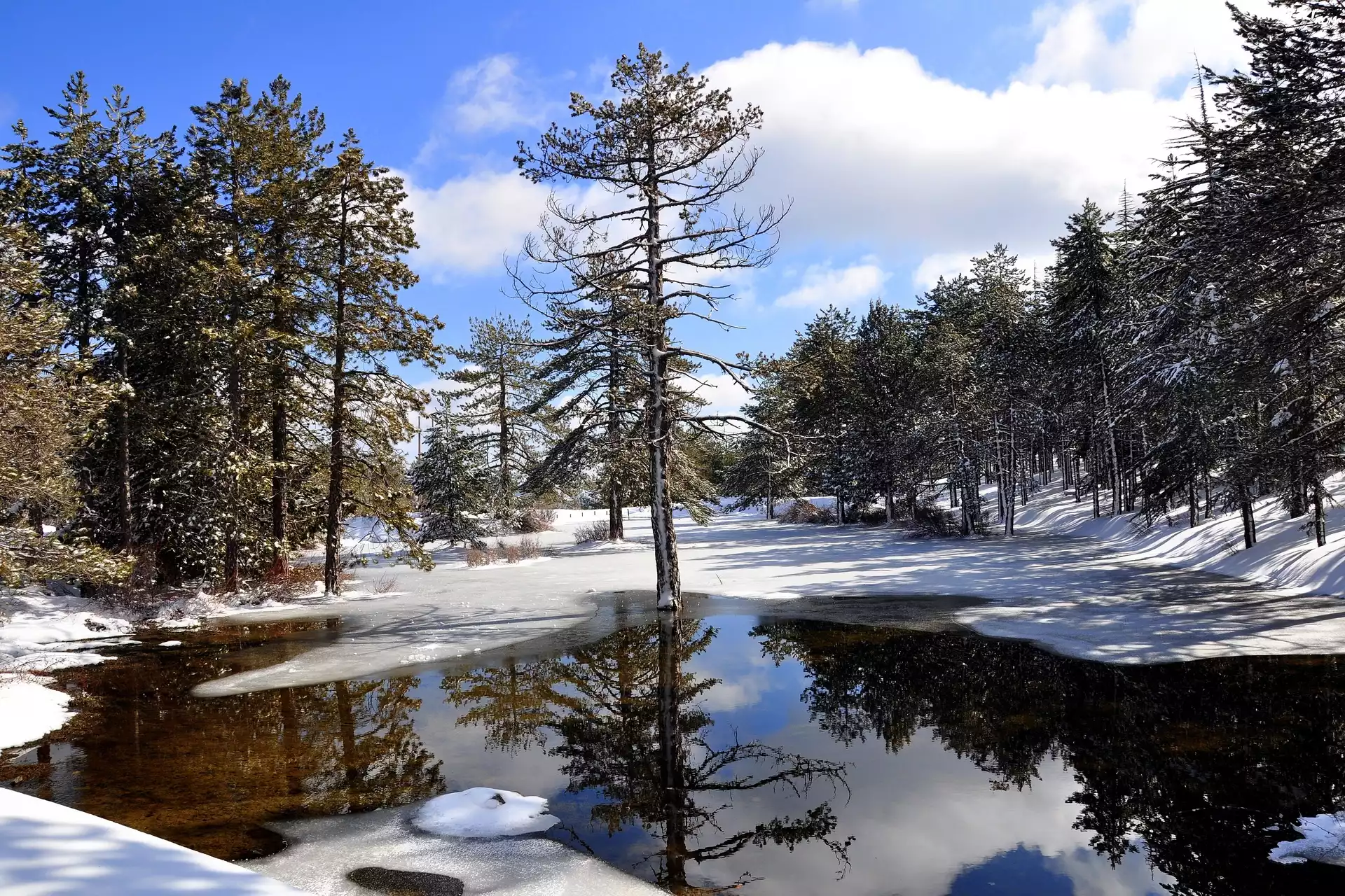 Zdjęcia, Jezioro, Śnieg, Drzewa