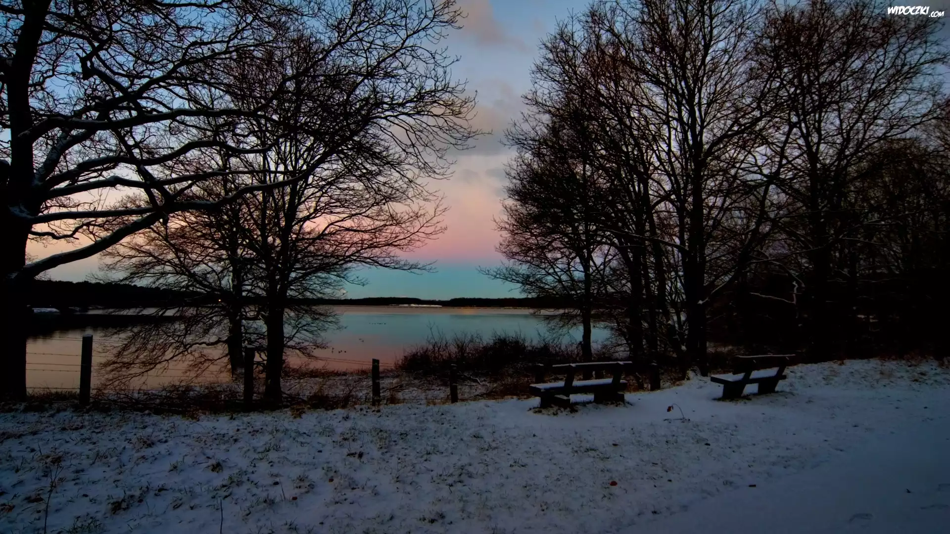 Zdjęcia, Jezioro, Śnieg, Drzewa