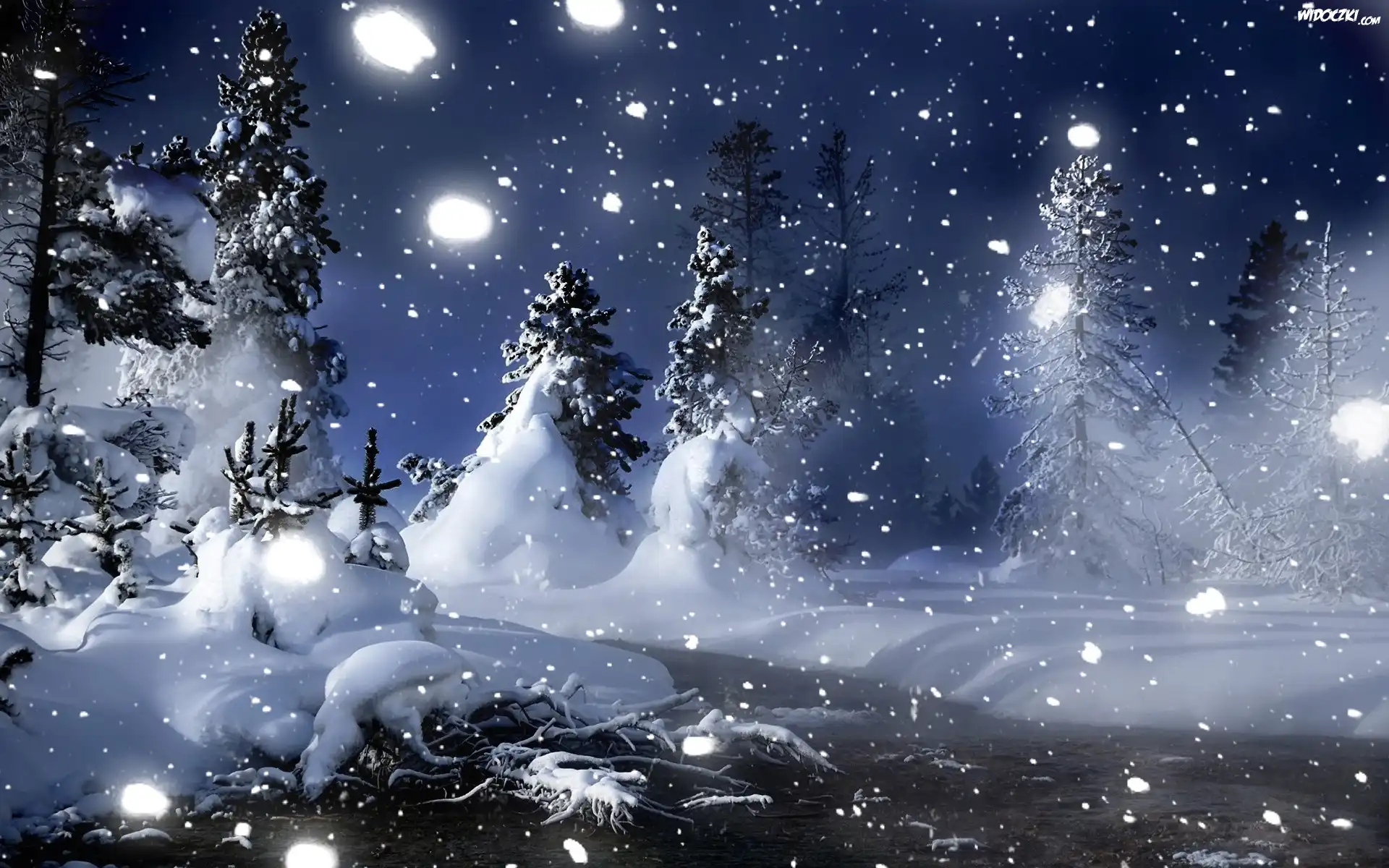 Zdjęcia, Padający, Śnieg, Drzewa