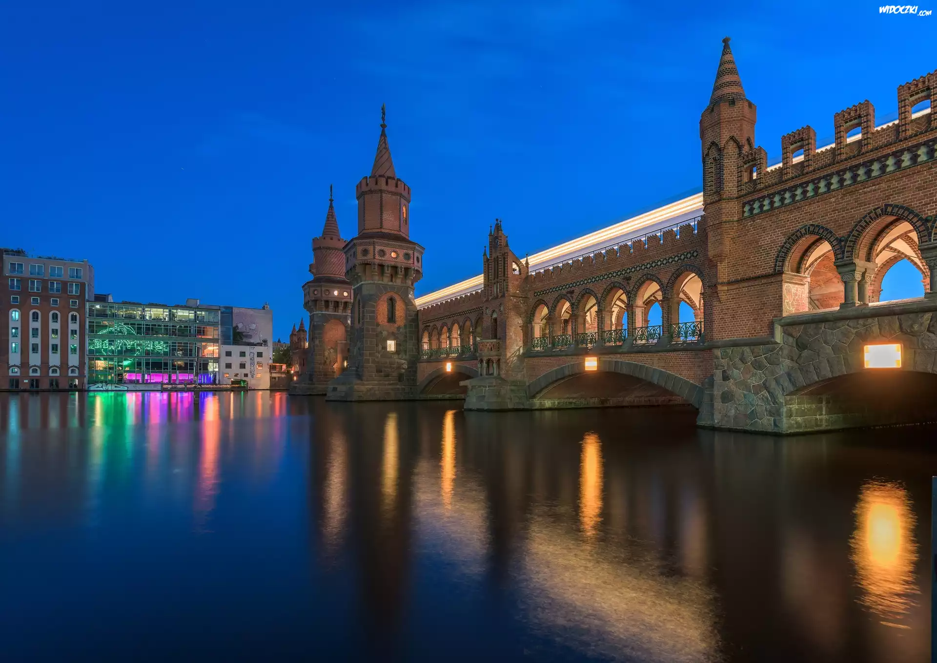 Zdjęcia, Niemcy, Berlin, Most, Rzeka, Budynki ,Noc