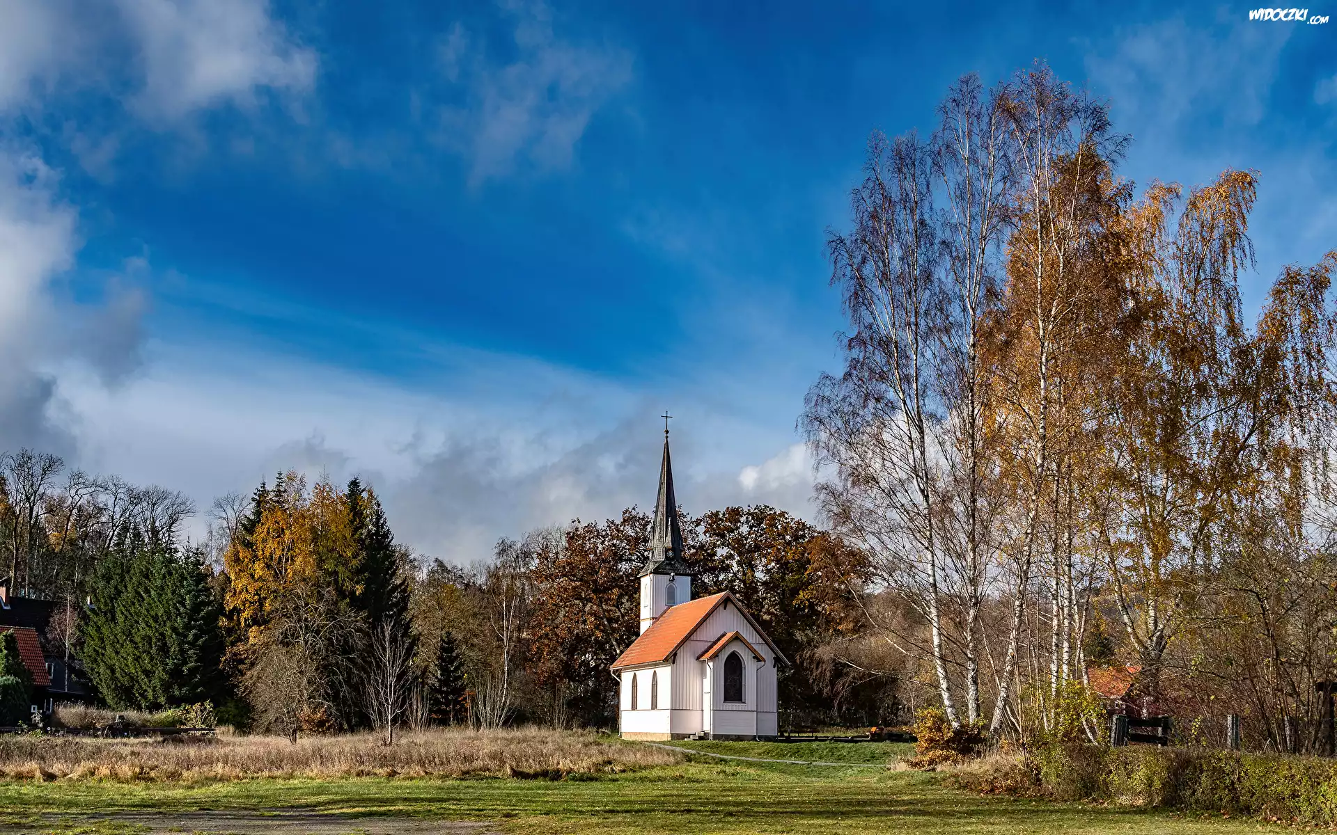 Zdjęcia, Niemcy, Saksonia Anhalt, Elend, Niebo, Chmury, Drzewa, Polana, Kościół