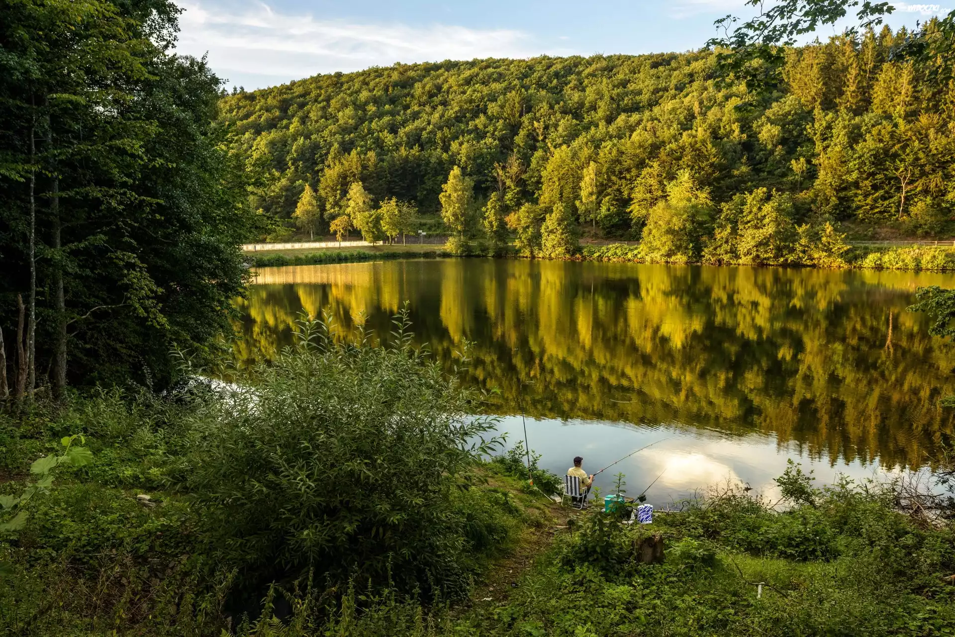 Zdjęcia, Niemcy, Jezioro Biggesee, Lasy, Wędkowanie