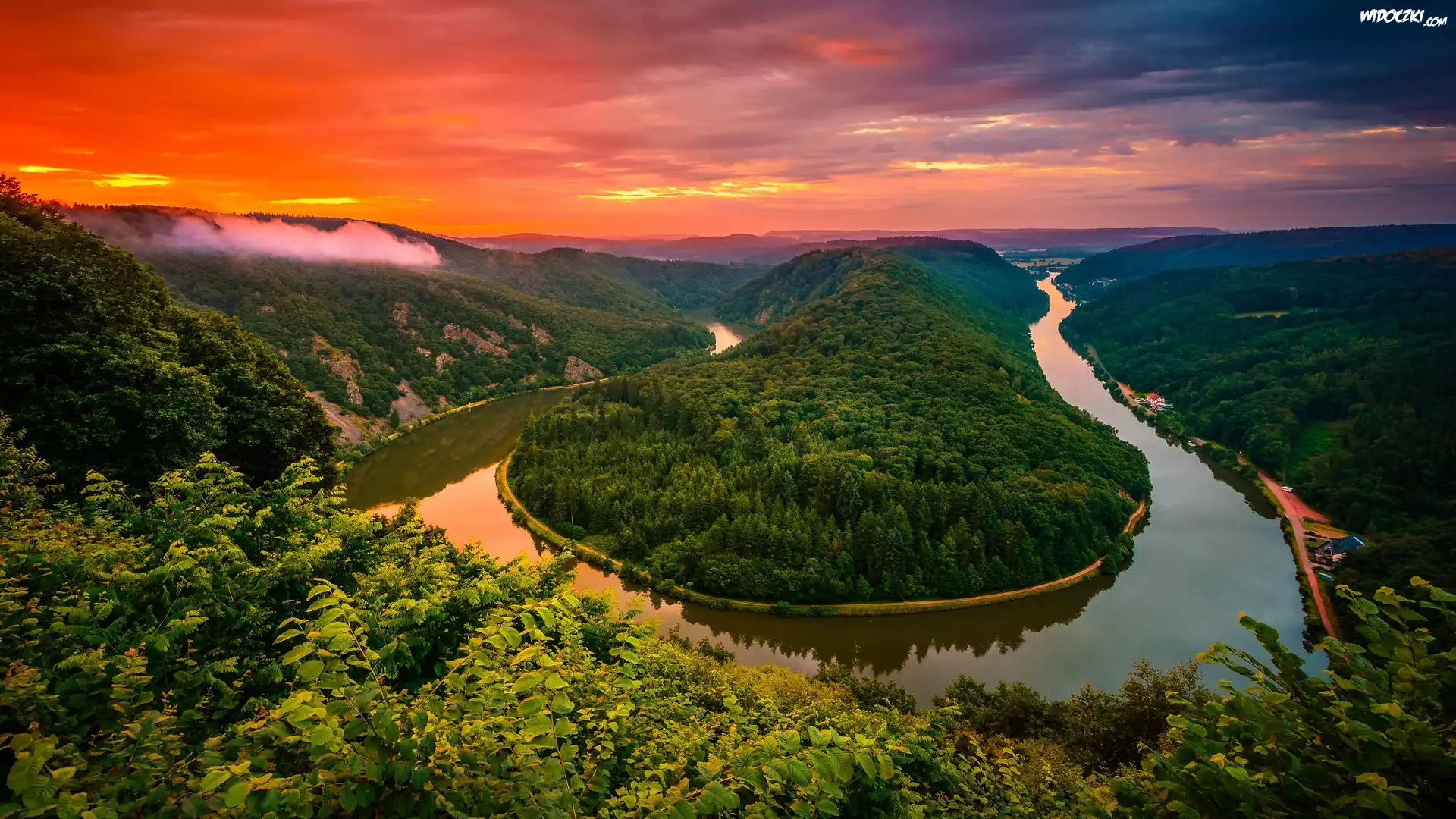 Zdjęcia, Rzeka, Saara River, Zielone, Lasy, Zachód słońca, Mettlach, Niemcy