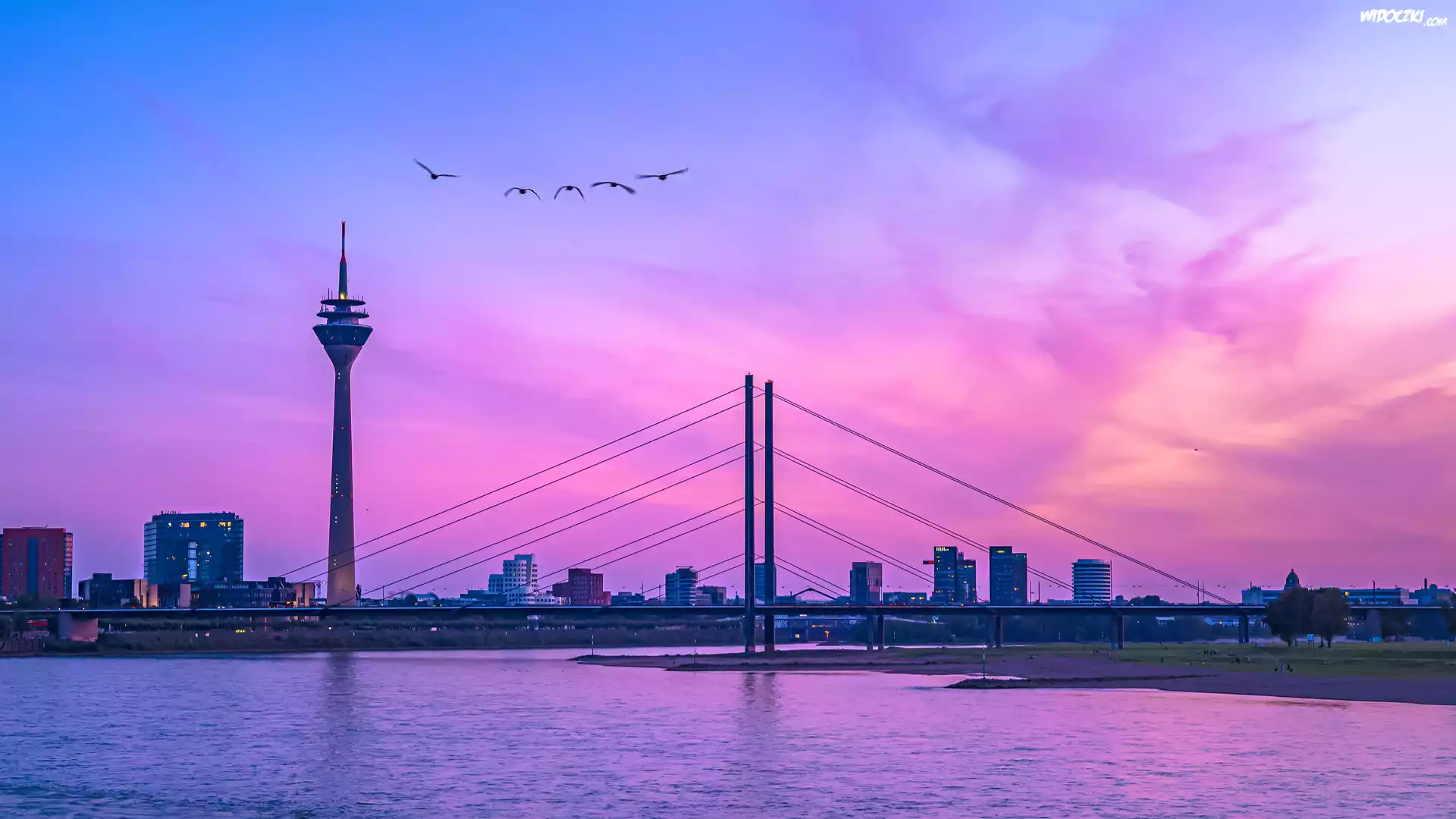 Zdjęcia, Dusseldorf, Niemcy, Rzeka Ren, Wieża telekomunikacyjna, Rhine Tower