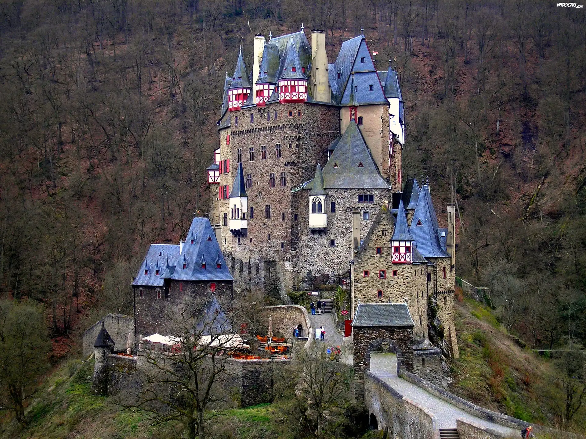 Zdjęcia, Niemcy, Zamek, Eltz, Wzgórza, Lasy