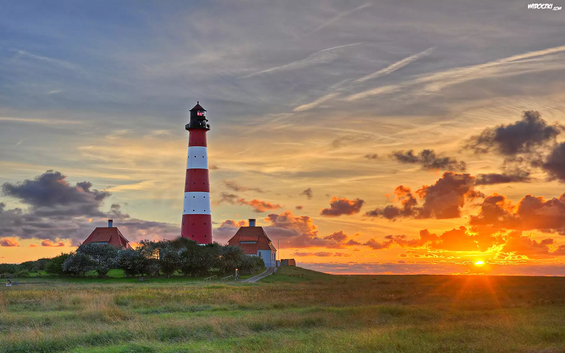 Zdjęcia, Niemcy, Latarnia Morska Westerheversand, Zachód słońca