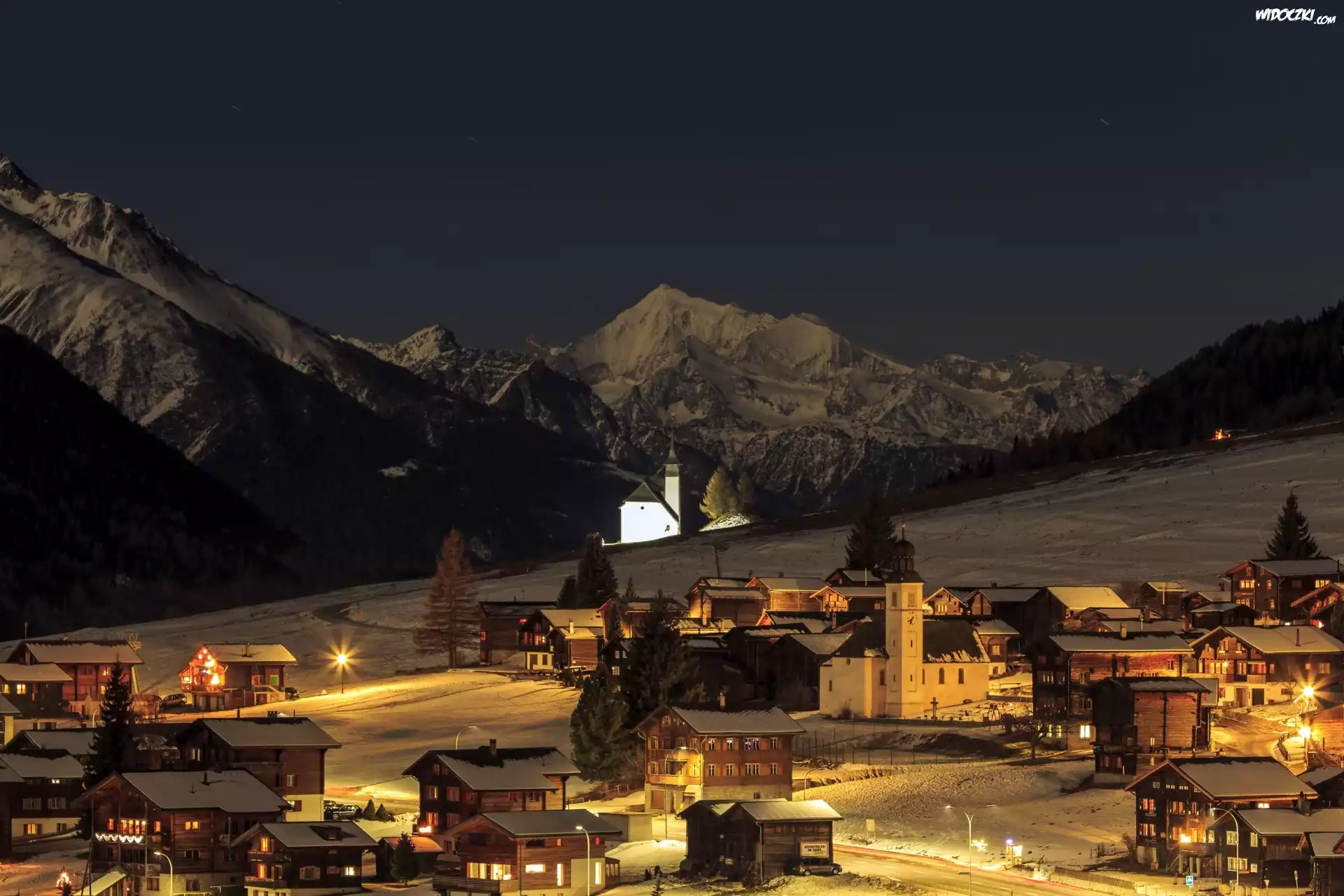 Zdjęcia, Noc, Szwajcaria, Bergdorf, Góry