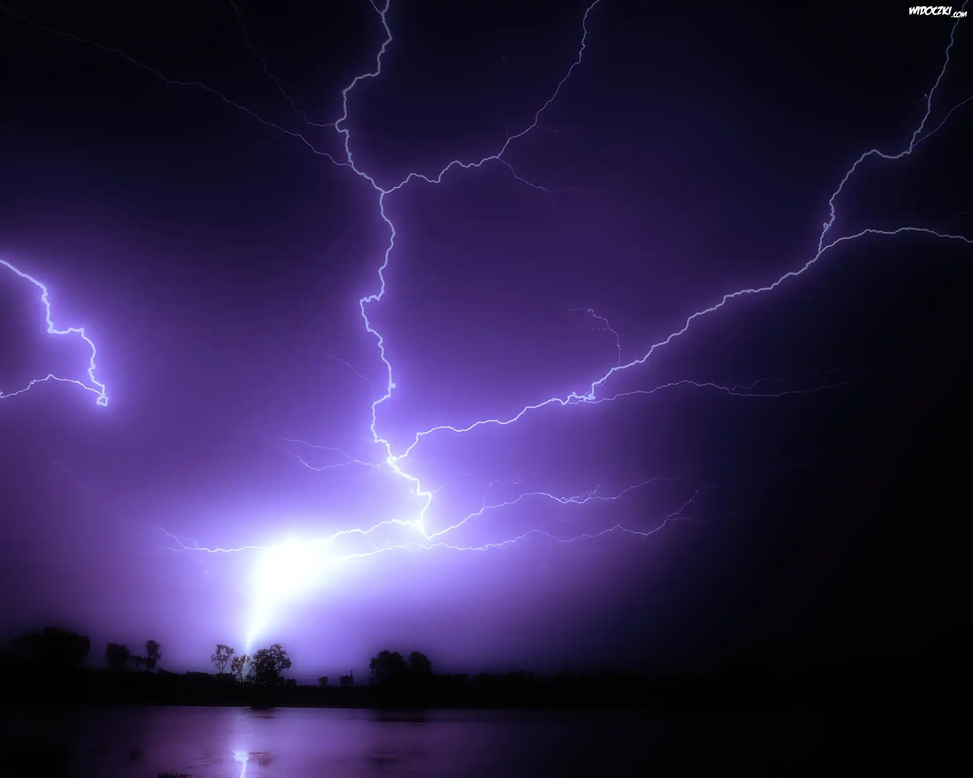 Zdjęcia, Błyskawice, Noc, Jezioro
