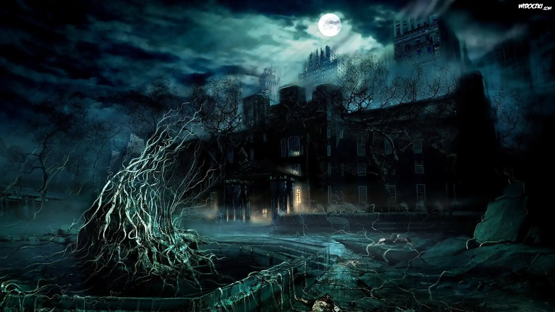 Zdjęcia, Noc, Księżyc, Dom, Chmury